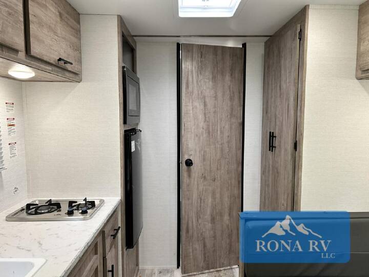 A cozy travel trailer for two or four to enjoy! This unit features a rear bath layout which includes a shower, toilet, and vanity with sink, plus medicine cabinet. No campsite facilities needed! Cook meals and snacks using the two burner cooktop and microwave oven and enjoy eating inside at the booth dinette. When you are not enjoying a meal, the dinette is a great place to play a board game or cards. There is a large closet for clothing storage, and overhead cabinets for your things as well. The front bed is perfect for two, and a nightstand is available for your personal belongings, plus more storage can be found with a large front overhead shelf. This unit even has a fireplace beneath the kitchen sink area!! If you're looking for an affordable, lightweight travel trailer, you've found it in the Ameri-Lite Super Lite by Gulf Stream. These models may be lighter in weight, but they don't skimp out on comfortable features. Each unit includes high-performance vinyl flooring throughout, a white kitchen sink, craft-made cabinetry with designer pulls, plus fabric-wrapped box valances to make you feel right at home. You'll enjoy the 6' 8" interior height, wood ceiling trim, multiple USB ports, and more features included within the Camping Package. These models also include a tankless water heater, a central control panel to control your unit's functions, plus plenty of safety features you are sure to appreciate for your family. You can't go wrong with an Ameri-Lite Super Lite travel trailer. Choose your favorite floorplan today!