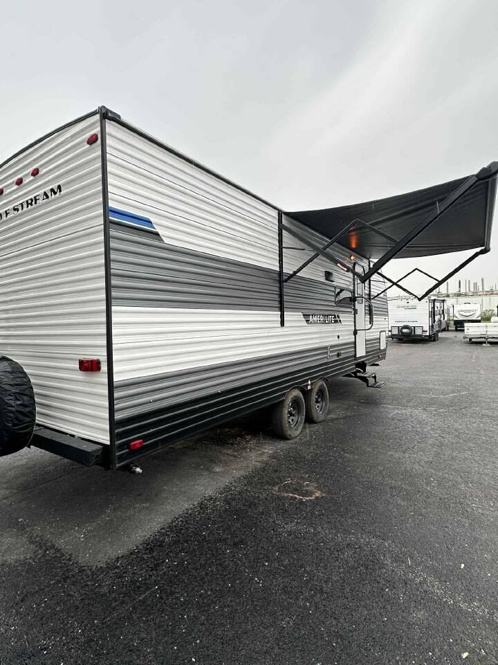 Step into a world of adventure with the 2025 GULF STREAM AMERI-LITE 269BH, where comfort meets convenience in an expertly designed travel trailer. This modern marvel redefines what it means to travel luxuriously on the road. Ideal for family vacations or spontaneous getaways, the Ameri-Lite 269BH offers the perfect blend of space and efficiency. Its sleek, aerodynamic profile is not only a head-turner on the highway but also ensures a smooth and fuel-efficient journey. The 269BH trim is designed with both style and functionality in mind, showcasing a layout that boasts ample sleeping arrangements, sophisticated interiors, and top-of-the-line amenities that promise to turn every trip into an unforgettable experience.