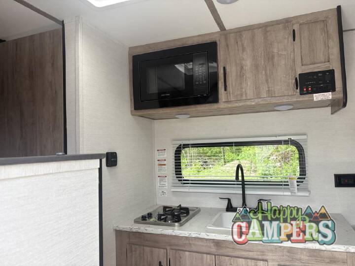 This travel trailer is ideal for families seeking adventure and relaxation! The incredible microwave and refrigerator simplify meal planning, while the two-burner cooktop lets you cook up delicious meals for the whole family. The bunk beds are a hit with kids, providing a fun and cozy sleeping space, while the comfortable bed is perfect for parents to unwind. Ample storage space is available, including flip-up storage and overhead shelves, keeping your belongings organized and within reach. If you're looking for an affordable, lightweight travel trailer, you've found it in the Ameri-Lite Super Lite by Gulf Stream. These models may be lighter in weight, but they don't skimp out on comfortable features. Each unit includes high-performance vinyl flooring throughout, a white kitchen sink, craft-made cabinetry with designer pulls, plus fabric-wrapped box valances to make you feel right at home. You'll enjoy the 6' 8" interior height, wood ceiling trim, multiple USB ports, and more features included within the Camping Package. These models also include a tankless water heater, a central control panel to control your unit's functions, plus plenty of safety features you are sure to appreciate for your family. You can't go wrong with an Ameri-Lite Super Lite travel trailer. Choose your favorite floorplan today!