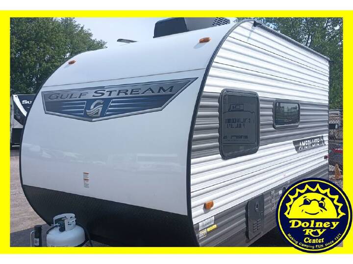 You will love these travel trailer appliances! The sleek microwave and spacious refrigerator make meal prep effortless, while the convenient two-burner cooktop lets you cook up tasty meals on the go. The cozy dinette is perfect for savoring meals or enjoying quality time, and the plush bed ensures a rejuvenating night's sleep. Thoughtful storage solutions, including flip-up storage and overhead shelves, keep your belongings tidy and easily accessible. This travel trailer is perfect for anyone seeking a peaceful and adventurous retreat. With its clever design and functional features, it's easy to tow and park, allowing you to explore scenic destinations with ease. If you're looking for an affordable, lightweight travel trailer, you've found it in the Ameri-Lite Super Lite by Gulf Stream. These models may be lighter in weight, but they don't skimp out on comfortable features. Each unit includes high-performance vinyl flooring throughout, a white kitchen sink, craft-made cabinetry with designer pulls, plus fabric-wrapped box valances to make you feel right at home. You'll enjoy the 6' 8" interior height, wood ceiling trim, multiple USB ports, and more features included within the Camping Package. These models also include a tankless water heater, a central control panel to control your unit's functions, plus plenty of safety features you are sure to appreciate for your family. You can't go wrong with an Ameri-Lite Super Lite travel trailer. Choose your favorite floorplan today!