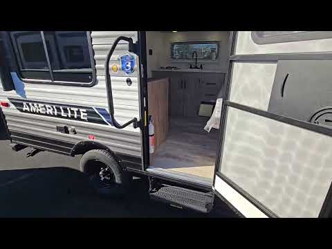 You will love these travel trailer appliances! The sleek microwave and spacious refrigerator make meal prep effortless, while the convenient two-burner cooktop lets you cook up tasty meals on the go. The cozy dinette is perfect for savoring meals or enjoying quality time, and the plush bed ensures a rejuvenating night's sleep. Thoughtful storage solutions, including flip-up storage and overhead shelves, keep your belongings tidy and easily accessible. This travel trailer is perfect for anyone seeking a peaceful and adventurous retreat. With its clever design and functional features, it's easy to tow and park, allowing you to explore scenic destinations with ease. If you're looking for an affordable, lightweight travel trailer, you've found it in the Ameri-Lite Super Lite by Gulf Stream. These models may be lighter in weight, but they don't skimp out on comfortable features. Each unit includes high-performance vinyl flooring throughout, a white kitchen sink, craft-made cabinetry with designer pulls, plus fabric-wrapped box valances to make you feel right at home. You'll enjoy the 6' 8" interior height, wood ceiling trim, multiple USB ports, and more features included within the Camping Package. These models also include a tankless water heater, a central control panel to control your unit's functions, plus plenty of safety features you are sure to appreciate for your family. You can't go wrong with an Ameri-Lite Super Lite travel trailer. Choose your favorite floorplan today!