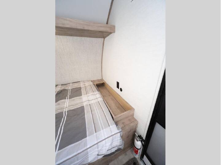 You will love these travel trailer appliances! The sleek microwave and spacious refrigerator make meal prep effortless, while the convenient two-burner cooktop lets you cook up tasty meals on the go. The cozy dinette is perfect for savoring meals or enjoying quality time, and the plush bed ensures a rejuvenating night's sleep. Thoughtful storage solutions, including flip-up storage and overhead shelves, keep your belongings tidy and easily accessible. This travel trailer is perfect for anyone seeking a peaceful and adventurous retreat. With its clever design and functional features, it's easy to tow and park, allowing you to explore scenic destinations with ease.   If you're looking for an affordable, lightweight travel trailer, you've found it in the Ameri-Lite Super Lite by Gulf Stream. These models may be lighter in weight, but they don't skimp out on comfortable features. Each unit includes high-performance vinyl flooring throughout, a white kitchen sink, craft-made cabinetry with designer pulls, plus fabric-wrapped box valances to make you feel right at home. You'll enjoy the 6' 8" interior height, wood ceiling trim, multiple USB ports, and more features included within the Camping Package. These models also include a tankless water heater, a central control panel to control your unit's functions, plus plenty of safety features you are sure to appreciate for your family. You can't go wrong with an Ameri-Lite Super Lite travel trailer. Choose your favorite floorplan today!