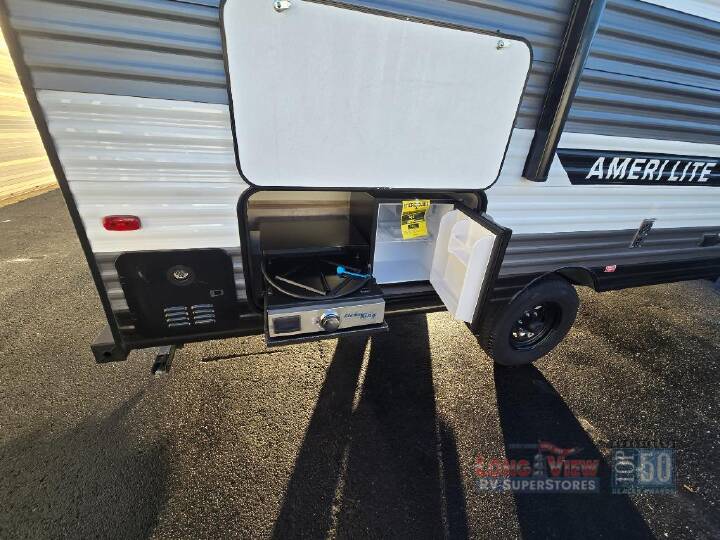 Are you searching for a travel trailer with more space and a larger sleeping capacity? Check out this unit with a U-shaped dinette slide out, double-size bunks, plus a versatile Murphy bed! The chef can whip up a hearty meal on the two burner cooktop, or use the outside 1/2 kitchen. The full bath inside will allow you to stay clean throughout your camping trip, and you'll find plenty of storage space, including a wardrobe for clothes. If you're looking for an affordable, lightweight travel trailer, you've found it in the Ameri-Lite Super Lite by Gulf Stream. These models may be lighter in weight, but they don't skimp out on comfortable features. Each unit includes high-performance vinyl flooring throughout, a white kitchen sink, craft-made cabinetry with designer pulls, plus fabric-wrapped box valances to make you feel right at home. You'll enjoy the 6' 8" interior height, wood ceiling trim, multiple USB ports, and more features included within the Camping Package. These models also include a tankless water heater, a central control panel to control your unit's functions, plus plenty of safety features you are sure to appreciate for your family. You can't go wrong with an Ameri-Lite Super Lite travel trailer. Choose your favorite floorplan today!