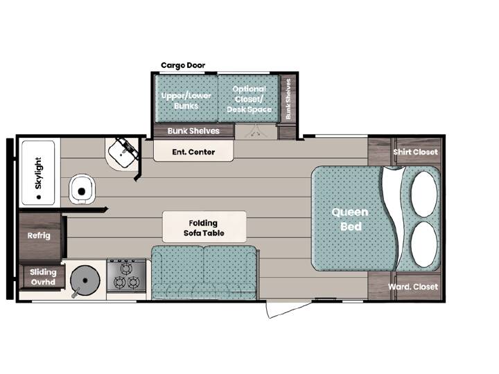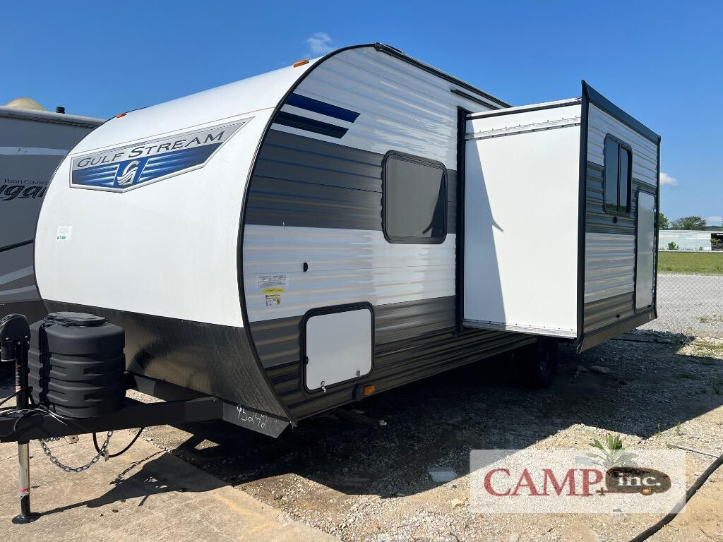 2025 Gulf Stream RV Ameri-Lite Ultra Lite 228SB, Gulf Stream Ameri-Lite Ultra Lite travel trailer 228SB highlights: Queen Bed Entertainment Center Bunk Beds Folding Sofa Table This travel trailer is perfect for a family thanks to its several spaces for rest on the road like the queen bed for you and your partner, the upper and lower bunks for kids, and a folding sofa table for guests, who will also have tons of fun thanks to the entertainment center place In front of the sofa. This unit also has a lot of space to store things and belongings like a shirt closet and wardrobe closet beside the bed, bunk shelves next to the bunk beds, and a sliding overhead cabinet in the kitchen. Also, you will find a refrigerator, sink, and a three-cooktop burner in the kitchen area. Finally, take a relaxing bath in the incredible full bathroom with a skylight The Ameri-Lite Ultra Lite travel trailers by Gulf Stream are the perfect RV for families wanting to start their camping lifestyle, but not break the bank. These lightweight units are built with a diamond plate lower front, a one-piece synthetic vinyl roof, and a uni-body construction with steel hurricane straps tying the walls to the floor for added durability. The front power hitch jack and four stabilizer jacks will make set-up hassle-free once you arrive at the campground, and you can put out the electric awning to rest in the shade when you're done. Each model includes convenient amenities, like the 13,500 BTU A/C, the tankless water heater, a central control panel, and multiple USB ports for your tablet, phone, and camera! The inside is designed to make you feel at home with radiant LED lighting, designer kitchen backsplash, pleated privacy shades, craft-made cabinetry, plus many more features. Start your RV lifestyle with an affordable, lightweight Ameri-Lite Ultra Lite travel trailer today!