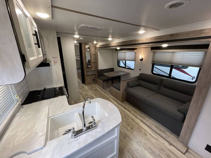 This Travel Trailer sleeps 8 people and is available at Camping World in Buford, GA.