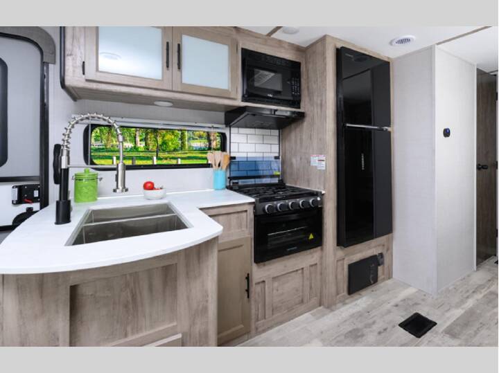 This travel trailer will have you feeling right at home! The front private bedroom has a king bed slide to lay your head on at night across from a vanity with wardrobes on either side, an area prepped to add an optional washer and dryer, plus an entrance into the walk-through bathroom. There is also a rear private bedroom which has a queen bed slide across from a vanity with wardrobes on either side. Just outside the bedroom is the second full bathroom so everyone can quickly get ready in the mornings. Keep your bellies full with delicious home cooked meals prepared on the three burner cooktop then enjoy them at the U-shaped dinette. You can read the morning newspaper while relaxing on the sofa in front of the electric fireplace at the entertainment center! One of these Gulf Stream Conquest Supreme Series travel trailers is ideal for you whether you are looking for a family-friendly unit or a two person getaway! Their uni-body construction is made up of sidewalls, ceiling and floor screwed, glued and tied together with steel straps for unmatched strength and resilience. A powder-coated steel I-beam frame with welded outriggers hold them together and the one-piece seamless roof will last for years to come. Each model includes a 13,500 BTU ducted roof A/C and a gas furnace to keep you comfortable all year long, and the tankless water heater will provide endless hot showers. The included Supreme Package includes upgraded graphics and bigger slide windows, a heated and enclosed underbelly, solar and backup camera prep, and many more hassle-free features. You will appreciate the lighted storage area to easily pack your gear, and the Bluetooth soundbar with outside speakers will make unloading fun!