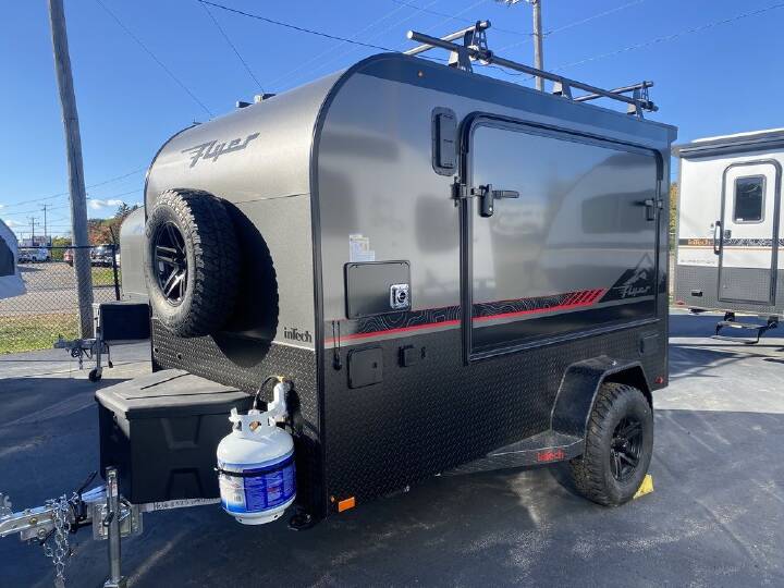 Explore all the corners of the world. Every Flyer is built utilizing an All-Aluminum, Fully Welded Cage Frame, making them strong enough to handle conditions when you find yourself off the paved trail. Explore is the micro-lite toy hauler that can go where traditional RVs simply cannot.