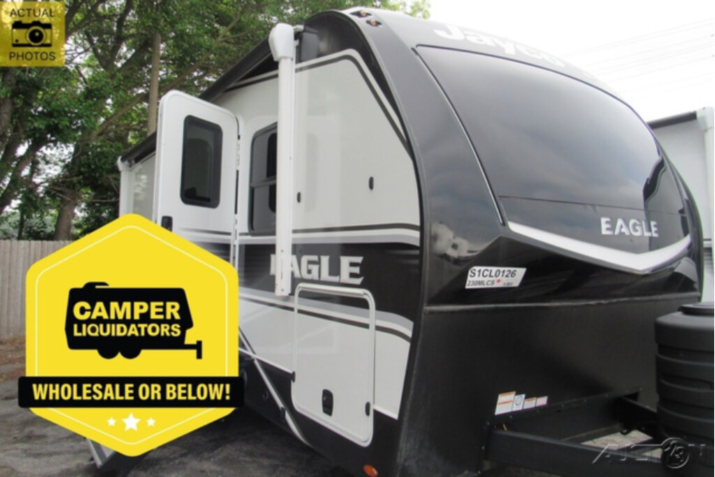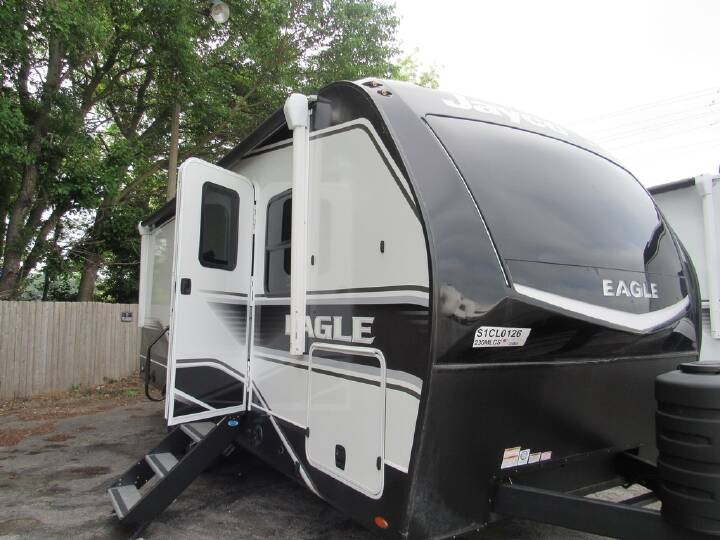 2025 Jayco Eagle HT 230MLCS, , Basic Information - Year: 2025, Basic Information - Make: Jayco, Basic Information - Model: Eagle HT, Basic Information - Trim: 230MLCS, Basic Information - Stock Number: 61963, Basic Information - VIN: 1UJBA0BM0S1CL0126, Basic Information - Condition: New, Basic Information - Dry Weight: 6575, Basic Information - Type: Travel Trailer, Basic Information - Sleeping Capacity: 4, Basic Information - Length (Feet): 27.67, Basic Information - Construction Body Material: Aluminum, Basic Information - Sidewall Construction: Fiberglass, Basic Information - Dry Weight (kg): 2982.4, Basic Information - Dry Weight (lbs): 6575, Bedroom / Bath - Bathroom, Bedroom / Bath - Bathroom Flooring Type: Vinyl, Bedroom / Bath - Bathroom Location: Rear, Bedroom / Bath - Bathroom Medicine Cabinet, Bedroom / Bath - Bathroom Mirror, Bedroom / Bath - Bathroom Vent / Fan System, Bedroom / Bath - Master Bedroom, Bedroom / Bath - Master Bedroom Door Style: Not Applicable, Bedroom / Bath - Master Bedroom Flooring Type: Vinyl, Bedroom / Bath - Master Bedroom Location: Front, Bedroom / Bath - Master Bedroom Mirror Doors, Bedroom / Bath - Number Of Bathrooms: 1, Bedroom / Bath - Number Of Queen Size Beds: 1, Bedroom / Bath - Shower, Bedroom / Bath - Shower Door Type: Plastic / Glass, Bedroom / Bath - Toilet, Bedroom / Bath - Toilet Type: Porcelain, Cargo / Storage - Pass-Thru Storage, Comfort - Air Conditioning (BTUs): 15,000, Comfort - Fireplace, Comfort - Heater, Comfort - Recliners / Rockers, Comfort - Number Of Recliner / Rockers: 2, Comfort - Number Of Convertible / Sofa Beds: 1, Comfort - Air Conditioning Type: Automatic, Comfort - Recliners / Rockers Material: Vinyl, Comfort - Heater (BTUs): 35000, Comfort - Heater Type: Automatic, Convenience - Power Vent Fan, Convenience - Sky Light, Convenience - Roof Vents, Drivetrain - Number Of Axles: 2, Electrical / Generator - Exterior Plugs, Electrical / Generator - Ground Fault Plugs, Electrical / Generator - Battery, Electrical / Generator - Voltage Meter, Electrical / Generator - Water Pump Power Display, Electrical / Generator - Air Conditioning Prewiring, Electrical / Generator - Heat Prewiring, Electrical / Generator - Battery Power Converter, Entertainment - Television, Entertainment - Radio, Entertainment - Speakers, Entertainment - TV Antenna Prewiring, Entertainment - Cable Prewiring, Entertainment - Surround Sound, Entertainment - Satellite Prewiring, Entertainment - Number Of Radios: 1, Entertainment - Number Of Televisions: 1, Entertainment - Speaker Location(s): Interior / Exterior, Exterior - Exterior Flood Lights, Exterior - Exterior Ladder, Exterior - Exterior Shower, Exterior - Retractable Roof Antenna, Holding Tanks - Fresh Water Holding Tank Gauge, Holding Tanks - Gray Water Holding Tank Gauge, Holding Tanks - Black Water Holding Tank Gauge, Holding Tanks - Holding Tanks, Holding Tanks - Number Of Fresh Water Holding Tanks: 1, Holding Tanks - Number Of Gray Water Holding Tan