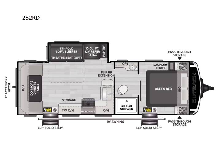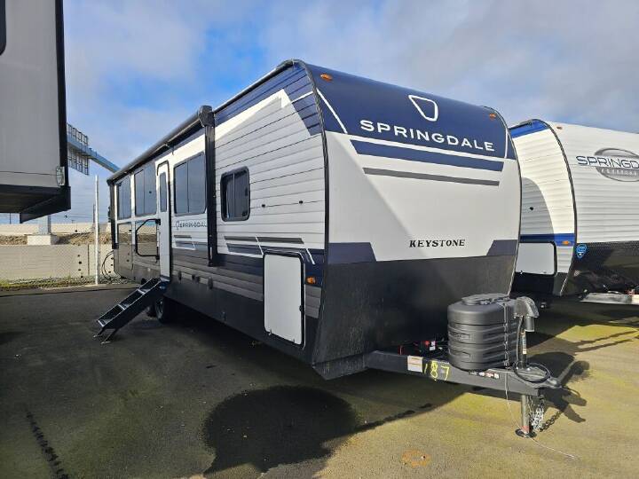 With dual entry doors on this travel trailer, you can enter in through the front master bedroom or the main living area and kitchen. The walk-thru bath will be easily accessible for everyone, and your guests can sleep on the dinette table or tri-fold sofa sleeper. If you're not needing the extra sleeping space, just choose the optional theater seat. A full kitchen with a three burner range and microwave oven will let you make meals each day, and there is added storage for all your kitchen necessities. You'll love the queen bed in the front master bedroom, along with dual wardrobe nightstands and a laundry chute that goes straight into the pass-thru storage for easy clean up. With any Outback travel trailer and toy hauler by Keystone, the Norco BAL frame is lightweight and corrosion-resistant and the huck-bolt assembly provides an extra measure of rugged durability. Also included is the BAL Norco 5.1 stabilizing system, MORryde suspension system, color-coded unified wiring, Tru-fit slide construction, and the Elements climate control allowing you to extend your camping season and combat humidity. The on demand hot water heater, fiberglass backed linoleum floor with no carpet, and the built-in pet kennel storage provide conveniences and comfort you will appreciate. Choose your favorite today! 2ND 13.5K A/C; BAL 5.1 STABILIZATION SYSTEM; COMFORT PACKAGE; INCLUDES - DEALER PREP; INCLUDES - FTRV QUALITY ASSURANCE / CAMP READY PKG; NO HIDDEN FEES; PREMIUM PACKAGE; REFRIGERATOR 12V 10CF X 2; SOLAR FLEX PROTECT