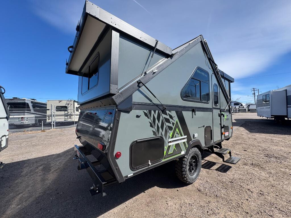 You'll love the amount of convenience and comfort found in this A-frame camper! There is a booth dinette up front that convert to a 40" x 80" bed, along with a rear sofa that converts to a 60" x 80" queen-size bed. Prepare your best meals on the two-burner cooktop, use the sink to clean up, and store cold items in the 3.2 cu. ft. 12V refrigerator. This unit also includes a 200-watt solar panel on the front dormer, and an optional 200-watt solar panel can be added to the rear dormer for even more off-grid capabilities!