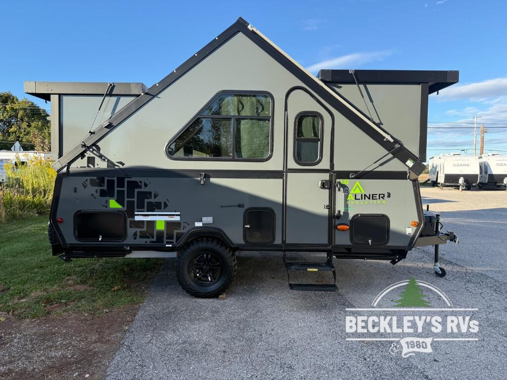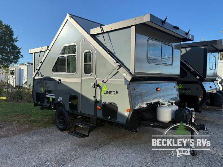 You'll love the amount of convenience and comfort found in this A-frame camper! There is a booth dinette up front that convert to a 40" x 80" bed, along with a rear sofa that converts to a 60" x 80" queen-size bed. Prepare your best meals on the two-burner cooktop, use the sink to clean up, and store cold items in the 3.2 cu. ft. 12V refrigerator. This unit also includes a 200-watt solar panel on the front dormer, and an optional 200-watt solar panel can be added to the rear dormer for even more off-grid capabilities! The Evolution A-frame camper by Aliner is coming to you with residential features and solid construction materials. You'll love the slate gray exterior, aluminum wheels, and the Azdel composite panels to help prolong the life of your camper. There are LED running lights, exterior baggage doors, and four stabilizer jacks to help keep your camper secure. You will also appreciate the keyless entry, the dual LP tanks with a cover, and the 200-watt solar panel on the front dormer for some off-grid power. The lift kit and 15" off-road tires add 3" to the height, allowing you to explore more roads, and you'll find many interior comforts to make you feel right at home! 2375/3500; GRAPHICS; RVIA