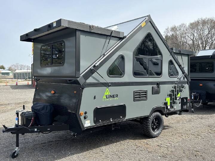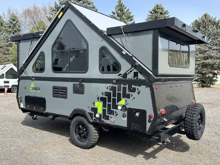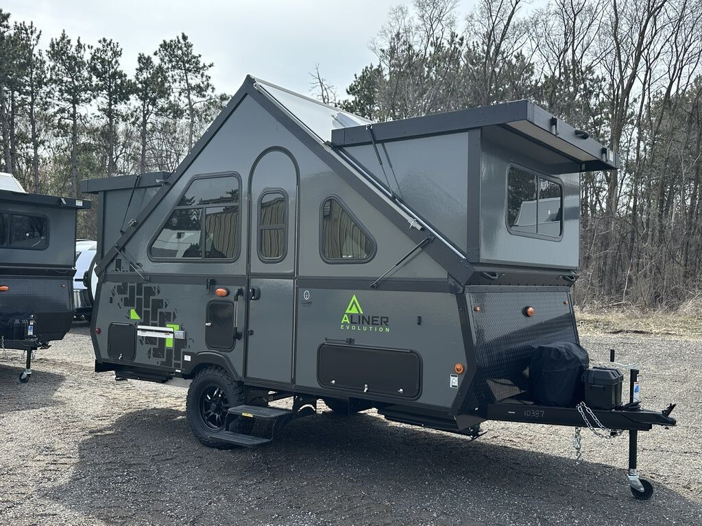 2026 Aliner Evolution 15, 2026 Aliner Evolution 15 Aliner considered every feature and detail when developing the new Evolution camping trailer, bringing next-generation high-end materials and industry-first applications to the category. The Evolution is the first hard-sided camping trailer to feature two queen-size beds in a package that fits easily into your garage. Did we mention the residential-size shower? It’s time to get your adventure started. Features include: