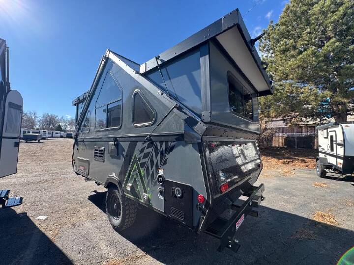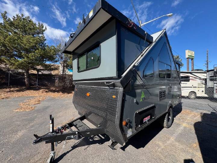 Don't wait another minute, head to the campground in this camper today! There is a two-burner cooktop to make lunch on and a 3.2 cu. ft. 12V refrigerator for your cold items. The sofa bed converts to a queen-size bed, and the dinette also converts to a queen-size bed. You'll find storage space for your items, and there is a 32" x 32" hidden shower under the dinette so you can clean up each day. This model also has a dry weight of 2,400 lbs. for easy towing! The Evolution A-frame camper by Aliner is coming to you with residential features and solid construction materials. You'll love the slate gray exterior, aluminum wheels, and the Azdel composite panels to help prolong the life of your camper. There are LED running lights, exterior baggage doors, and four stabilizer jacks to help keep your camper secure. You will also appreciate the keyless entry, the dual LP tanks with a cover, and the 200-watt solar panel on the front dormer for some off-grid power. The lift kit and 15" off-road tires add 3" to the height, allowing you to explore more roads, and you'll find many interior comforts to make you feel right at home!
