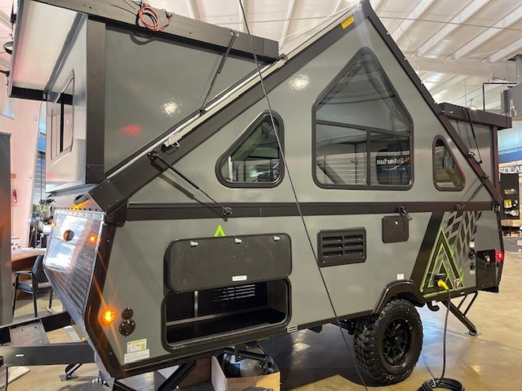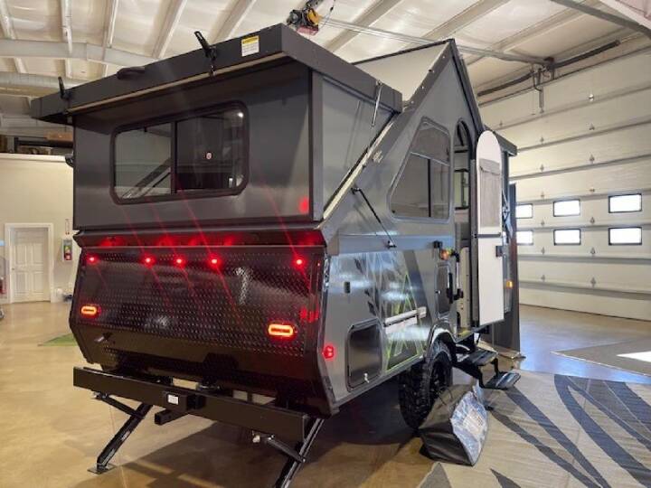 Don't wait another minute, head to the campground in this camper today! There is a two-burner cooktop to make lunch on and a 3.2 cu. ft. 12V refrigerator for your cold items. The sofa bed converts to a queen-size bed, and the dinette also converts to a queen-size bed. You'll find storage space for your items, and there is a 32" x 32" hidden shower under the dinette so you can clean up each day. This model also has a dry weight of 2,400 lbs. for easy towing! The Evolution A-frame camper by Aliner is coming to you with residential features and solid construction materials. You'll love the slate gray exterior, aluminum wheels, and the Azdel composite panels to help prolong the life of your camper. There are LED running lights, exterior baggage doors, and four stabilizer jacks to help keep your camper secure. You will also appreciate the keyless entry, the dual LP tanks with a cover, and the 200-watt solar panel on the front dormer for some off-grid power. The lift kit and 15" off-road tires add 3" to the height, allowing you to explore more roads, and you'll find many interior comforts to make you feel right at home!