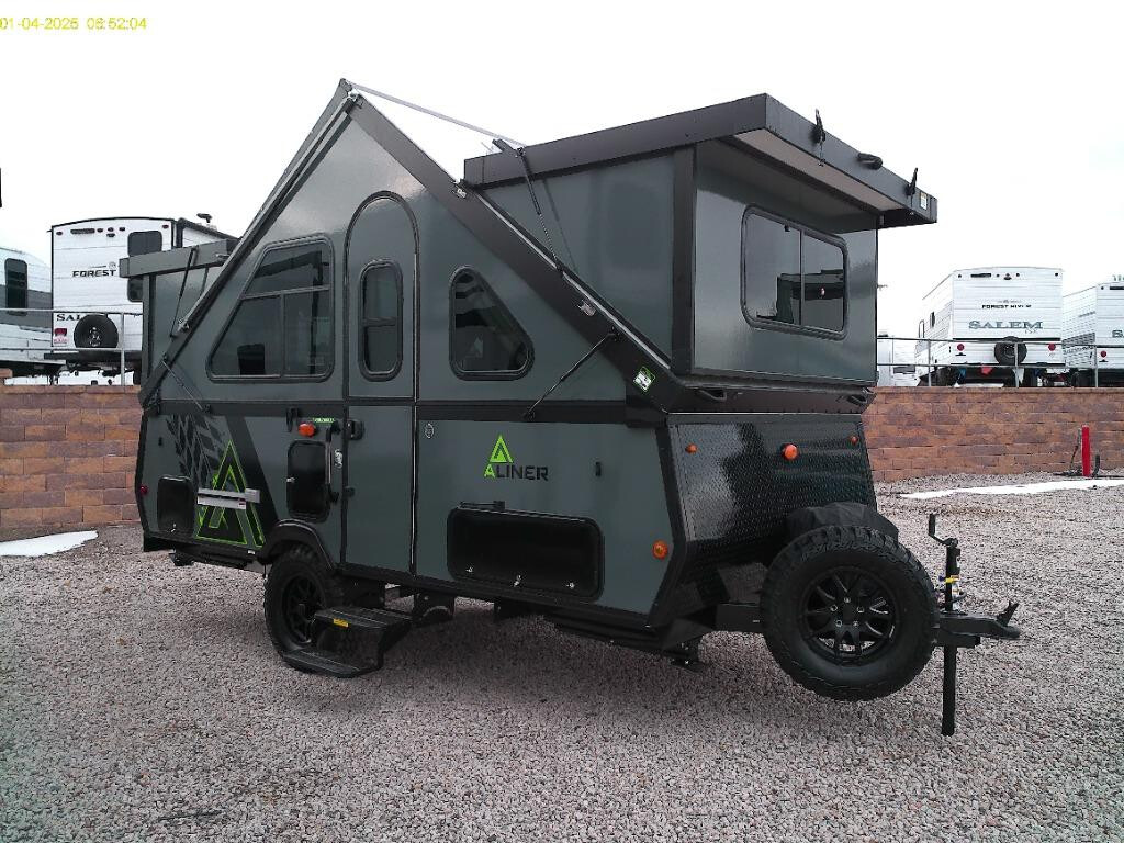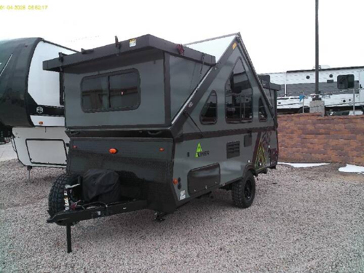 Don't wait another minute, head to the campground in this camper today! There is a two-burner cooktop to make lunch on and a 3.2 cu. ft. 12V refrigerator for your cold items. The sofa bed converts to a queen-size bed, and the dinette also converts to a queen-size bed. You'll find storage space for your items, and there is a 32" x 32" hidden shower under the dinette so you can clean up each day. This model also has a dry weight of 2,400 lbs. for easy towing! The Evolution A-frame camper by Aliner is coming to you with residential features and solid construction materials. You'll love the slate gray exterior, aluminum wheels, and the Azdel composite panels to help prolong the life of your camper. There are LED running lights, exterior baggage doors, and four stabilizer jacks to help keep your camper secure. You will also appreciate the keyless entry, the dual LP tanks with a cover, and the 200-watt solar panel on the front dormer for some off-grid power. The lift kit and 15" off-road tires add 3" to the height, allowing you to explore more roads, and you'll find many interior comforts to make you feel right at home!