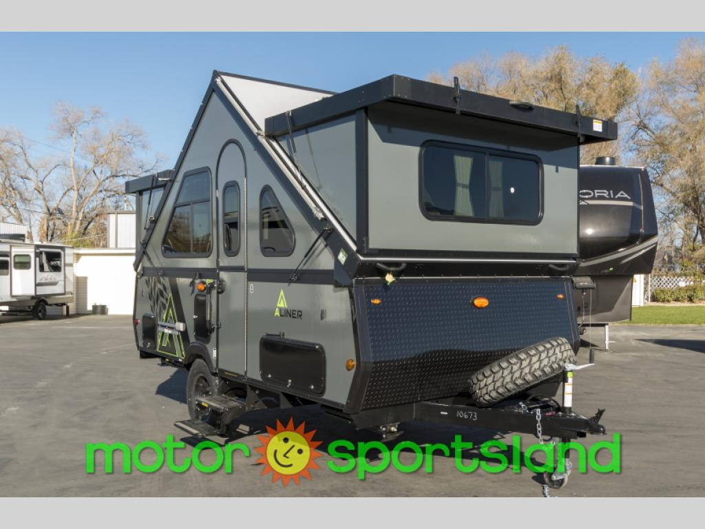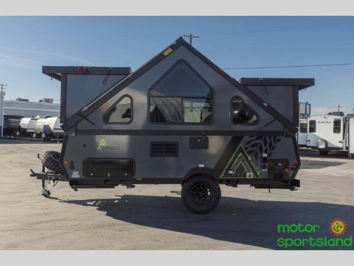 The Evolution A-frame camper by Aliner is coming to you with residential features and solid construction materials. You'll love the slate gray exterior, aluminum wheels, and the Azdel composite panels to help prolong the life of your camper. There are LED running lights, exterior baggage doors, and four stabilizer jacks to help keep your camper secure. You will also appreciate the keyless entry, the dual LP tanks with a cover, and the 200-watt solar panel on the front dormer for some off-grid power. The lift kit and 15" off-road tires add 3" to the height, allowing you to explore more roads, and you'll find many interior comforts to make you feel right at home!