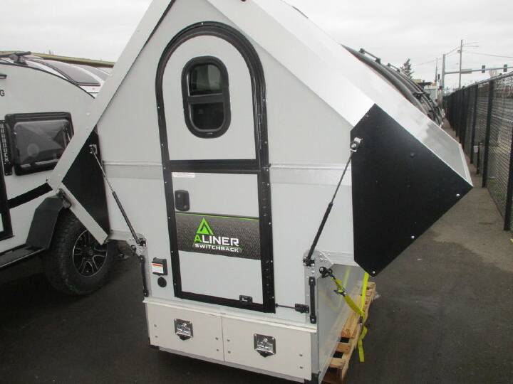 Do you want to experience the freedom of camping without sacrificing comfort? With our lightweight truck camper, it's possible since it is designed for easy towing and compact convenience. This unit offers a lightweight design, making it easy to tow, reducing strain on your vehicle, and its compact size allows for effortless maneuverability and parking. Further, the 30-second setup gets you camping fast, and the fast tie-downs and lockable entry provide peace of mind and security. Last but not least, the 60 x 72 bed offers a comfortable sleeping space for you to take a nap or have a good night's sleep. The new Aliner Switchback truck campers prioritize your comfort, ensuring every detail is designed to make your camping experience enjoyable! The camper features an ultra-light, rot-proof aluminum build, a 30-second setup, getting you camping fast so you can focus on what matters most. And with a compact design that fits in a 7-foot door while mounted, this truck camper is perfect for tight spaces. Dual 60" lockable drawers provide ample storage for your gear, keeping it safe and organized. In addition, fast tie-downs and lockable entry provide added security and peace of mind, while our 30-amp converter, interior 12-volt outlets, and electric outlets ensure you have the power you need, whenever you need it.
