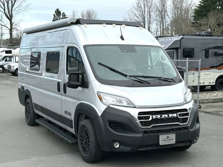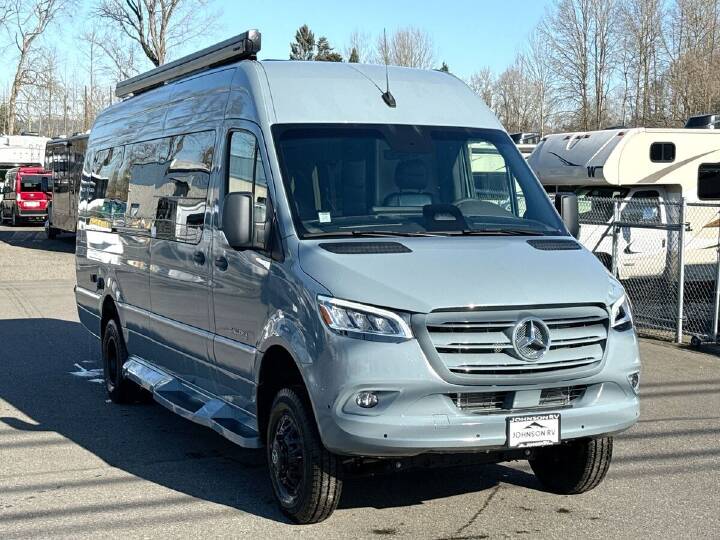 This all-wheel drive coach is perfect for trips near and far. Once you park, you can swivel the captain's seats around to enjoy lunch at the swivel table, and you can freshen up in the convenient wet bath before heading out to stretch your legs. There is an induction cooktop, a round sink, plus a Nova Kool compressor refrigerator for your perishables. The two jump seats and rear power sofa will convert to a comfortable bed at night, and the swivel table in between will allow you to play a game of cards before bed. And don't worry about storage space since this model includes overhead compartments and a wardrobe to keep your clothes wrinkle-free! The Beyond Class B gas motorhomes by Coachmen are packed full of stylish and convenient features to meet your adventurous lifestyle. You will love how easy it will be to drive with the Supersprings International suspension kit, the ten speed transmission, and the added safety features, like the blind spot assist and forward collision warning. The ABS insulated rear doors will provide more protection during the colder months, plus each model includes a Truma Combi Eco Plus furnace/water heater for maximum efficiency. A King Olympus digital antenna, WiFi router and cell booster prep means you can stay connected to the outside world as you travel, and the Firefly multiplex system includes dual screens to control your coach's functions with ease. Inside, you'll find hardwood cabinetry, a one-piece fiberglass shower, a rear pull-down screen and rear window covers, and two contemporary decor choices to fit your style. The optional Li Lithium Battery System can be added which features a 640 amp-hour lithium battery, a Xantrex XC Pro 3,000W inverter/charger, A Bluetooth battery management system, and more power features!