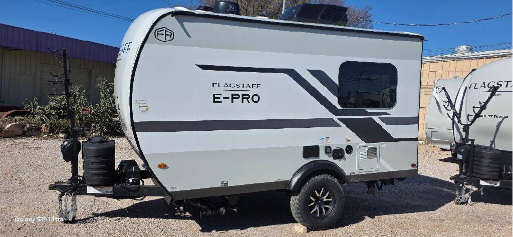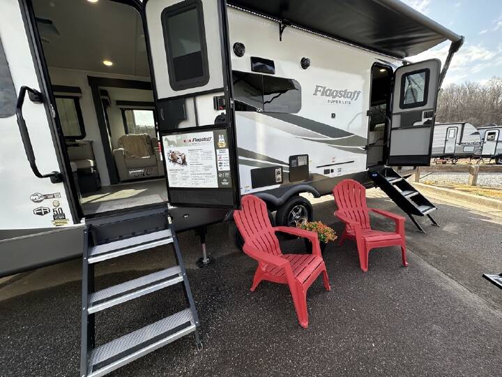 Flagstaff is a premium brand because of all the upgrades you get included! The current model includes 50 AMP service with a second 15.0 BTU A/C, a tire pressure monitoring system, a solar panel and inverter (important for running your 110 outlets!), and a 5.3 auto level system! It also has slide toppers, and 2 TV's.