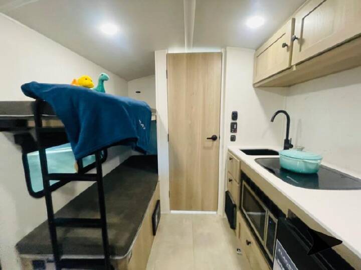 Perfect for couples, families, or friends, this trailer offers a comfortable and functional space to relax, recharge, and explore. The full bathroom is a serene retreat, equipped with everything you need to refresh and rejuvenate after a day of adventure. The two bunk beds give a snug and inviting sleeping spot, perfect for kids or adults looking for a cozy spot to rest. The kitchen is equipped with a microwave for quick and easy meal prep, and a fridge to keep your favorite snacks and drinks fresh. Overhead cabinets provide plenty of storage for your gear, cookware, and essentials, keeping your trailer tidy and organized. The bed offers a restful sleeping space, perfect for unwinding after a long day of exploring. With any Flagstaff E-Pro travel trailer by Forest River, you will experience lightweight towing, style and features that will meet your needs, plus amenities that give you more than you expected! Built with interior and exterior composite sidewall construction for added strength and durability, a fully laminated roof for weather-tight protection, and aluminum truss roof bracing for enhanced stability. These trailers are equipped with Dexter leaf-spring axles for smooth towing and durable performance. The interior features an aluminum dinette, bed, and bunk, providing a strong and lightweight framework for comfortable living. Additionally, the backup camera prep ensures a safe and stress-free reversing experience. Make your selection today! ! No Hidden Fees ! 1 YEAR RV FIX ! FEATURES - Bunkhouse