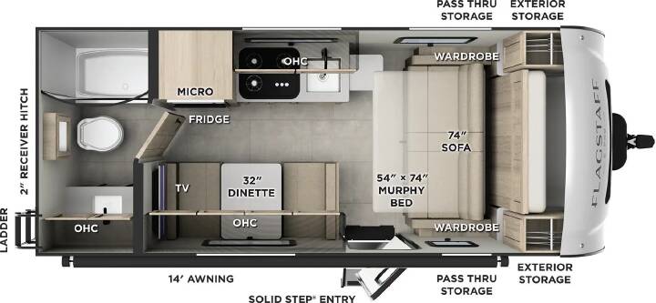 Super compact efficient camper! Flip the murphy bed up during day to maximize your space during the day. Perfect couples coach that is easy towing.