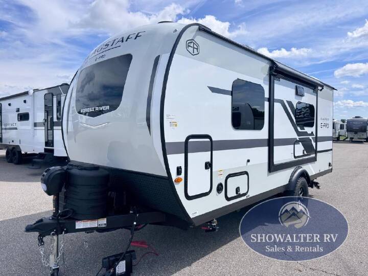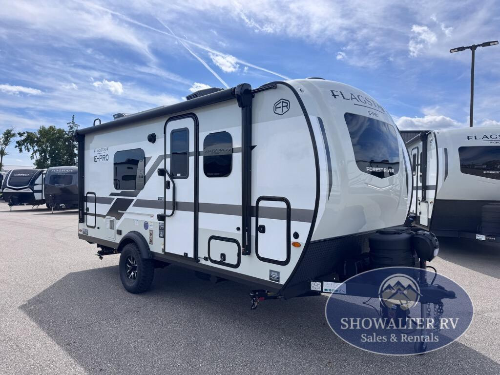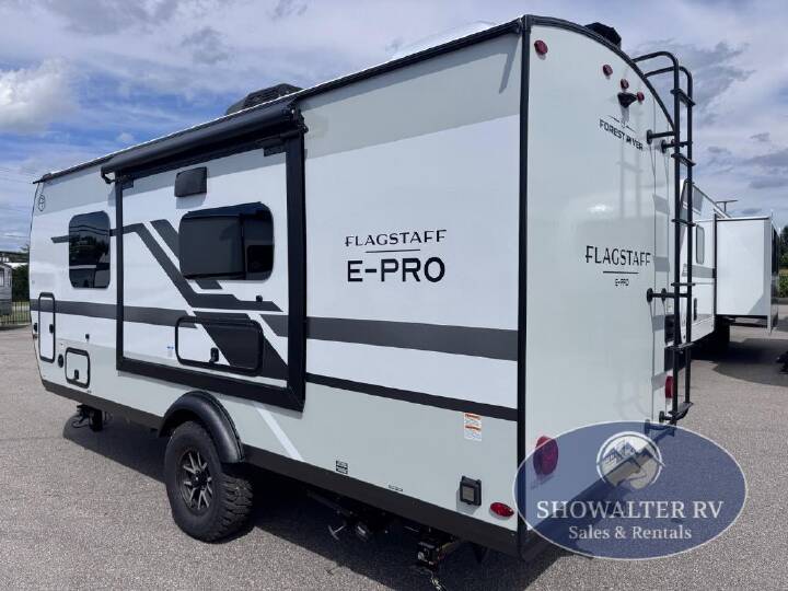 Camp with your favorite person in this trailer with the versatile Murphy bed/sofa combo up front giving you both a living area and a bedroom when you so choose. If you need sleeping space for one more, the dinette will provide that once easily setup. The large window gives you great views while dining or playing games. There is extra floor space in this trailer with the kitchen slide out that offers full amenities plus a sink to keep everything clean. And the full-length rear bathroom offers a spacious area to change your clothes in privacy and get cleaned up in the large shower. With any Flagstaff E-Pro travel trailer by Forest River, you will experience lightweight towing, style and features that will meet your needs, plus amenities that give you more than you expected! Built with interior and exterior composite sidewall construction, tongue and grove plywood flooring, and a vacuum laminated roof and walls, plus torsion axle, Rubber-Ryde suspension, and a tire pressure monitoring system for safety while traveling. And the 200 watt roof mount solar panel with 1,800-watt inverter will allow you to stay off-grid if you like. The interior offers a comfortable environment with the choice to use the air conditioner or furnace, and a 12V entertainment TV with a stereo to stay up to date on your favorite movies. Make your selection today!