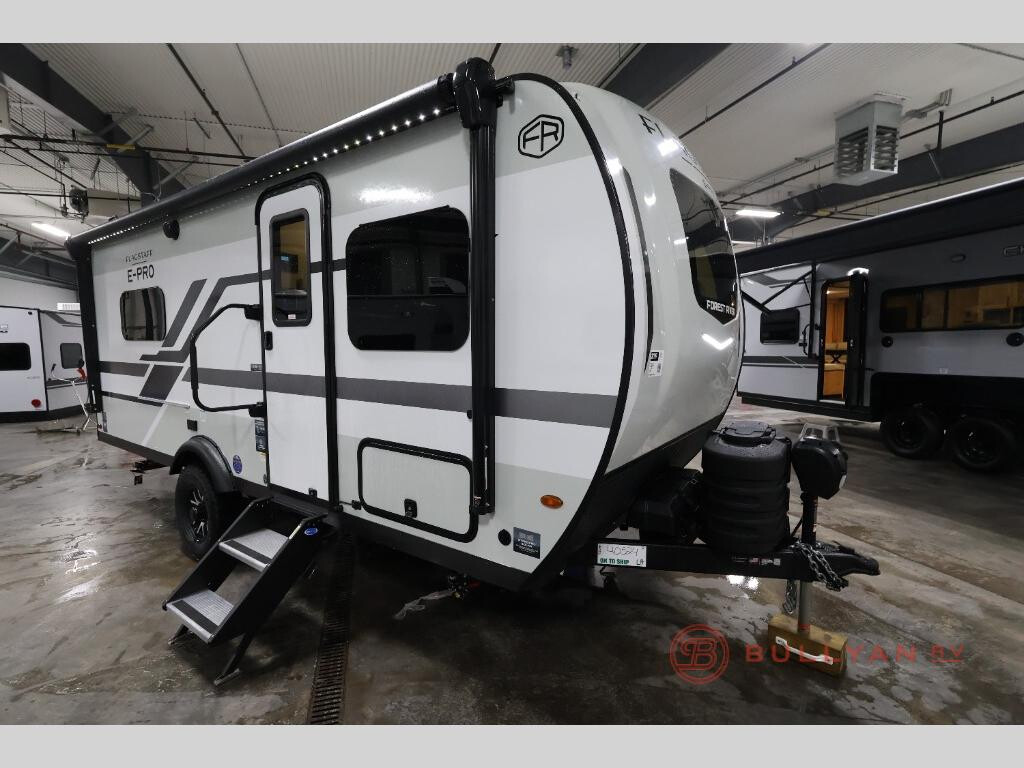 Unwind and relax in style, with plenty of storage space to keep you organized. The rear bedroom is a peaceful retreat, featuring a queen bed, spacious wardrobe, desk, and TV. The walkthrough bathroom is a practical and refreshing space, with a linen closet to keep your towels and toiletries tidy. Plus, the kitchen is equipped with a fridge, convection microwave, dinette, sink, and overhead cabinets, so you can prepare delicious meals and snacks with ease and enjoy quality time with loved ones. With any Flagstaff E-Pro travel trailer by Forest River, you will experience lightweight towing, style and features that will meet your needs, plus amenities that give you more than you expected! Built with interior and exterior composite sidewall construction for added strength and durability, a fully laminated roof for weather-tight protection, and aluminum truss roof bracing for enhanced stability. These trailers are equipped with Dexter leaf-spring axles for smooth towing and durable performance. The interior features an aluminum dinette, bed, and bunk, providing a strong and lightweight framework for comfortable living. Additionally, the backup camera prep ensures a safe and stress-free reversing experience. Make your selection today!