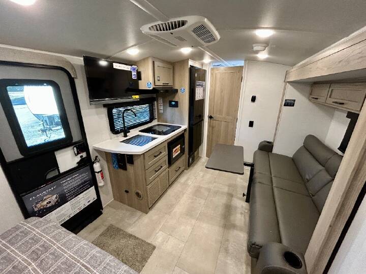 2026 Forest River Flagstaff E-Pro E20FBS, Introducing the 2026 Forest River Flagstaff E-Pro E20FBS, a remarkable travel trailer designed for adventure and comfort. With a dry weight of 3,669 lbs and a GVWR of 4,421 lbs, this unit is perfect for easy towing and maneuverability. Its compact length of 21.2 ft makes it ideal for those seeking a lightweight, efficient option without sacrificing space. The Flagstaff E-Pro E20FBS comfortably sleeps 3 and features a private bedroom, enhancing your camping experience. Benefit from the 13,500 BTU air conditioning and 20,000 BTU heater for year-round comfort. This new travel trailer is solar equipped, ensuring you can enjoy off-grid adventures to the fullest. Schedule your tour today!