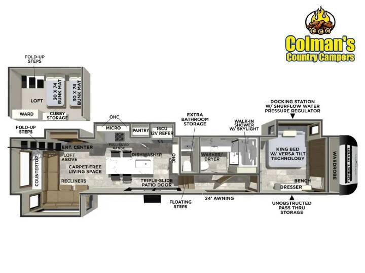 High Gloss Exterior60K On Demand Water Heater3,000 LBS Towable HitchSmart TV12V RefrigeratorTinted WindowsPower Landing Gear & Stabilizer Jacks