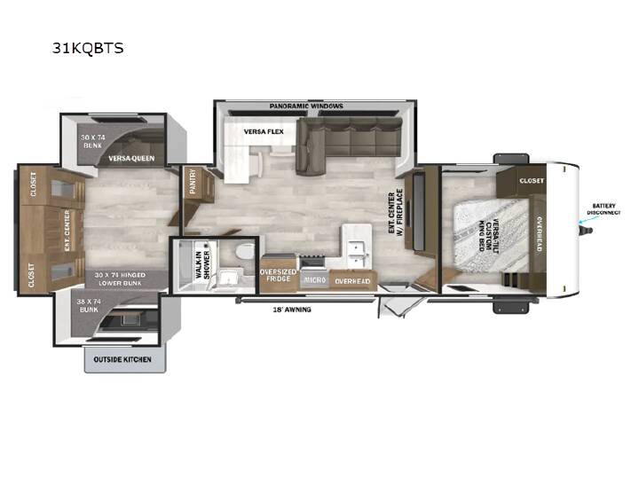 Forest River Wildwood travel trailer 31KQBTS highlights: