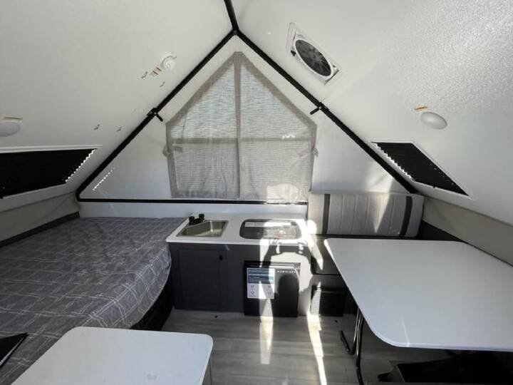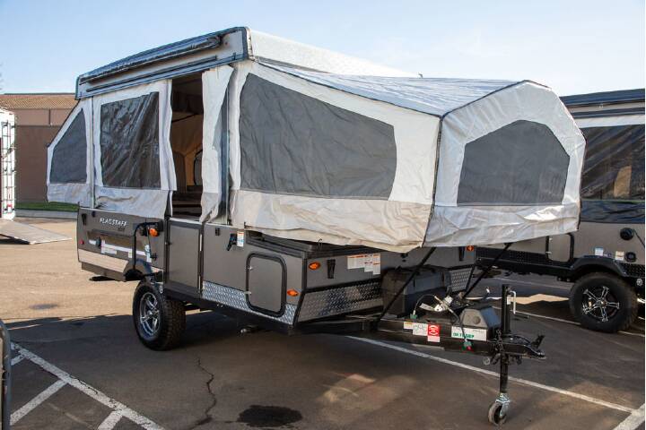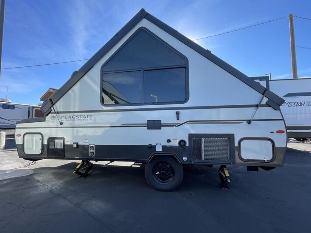 2026 Forest River Flagstaff Hardside Pop-Up Campers T12ST, 2026 Forest River Flagstaff Hardside Pop-Up Campers T12ST EMBRACING THE PINNACLE OF VERSATILITY. The Flagstaff Hardside Series emerges as a harmonious feeling of a travel trailer's exterior and the effortless towing convenience of a tent camper. Within this remarkable synthesis, every model features both an air conditioner and a furnace, ensuring your inner sanctum remains cozy, regardless of external conditions. The extraordinary speed and simplicity of setup ensures that mere moments after arriving at your chosen campsite, you'll already be immersed in the joys of your camping experience.