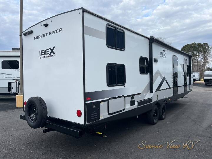 This layout is all about giving everyone their own space while keeping the coach easy to move around in. In the back, a rear bunkroom with 30" x 74" bunks creates a cozy spot for kids or guests to call their own, while the booth dinette in the main living area doubles as a place to eat, play games, or work on the road. The kitchen includes a pantry so you can actually stock real groceries instead of just weekend snacks, and the walkthrough bath connects everything together smoothly as you head up front. At the end of the day, you can slip straight through the bath into the queen bed, giving you a comfortable, private place to recharge without cutting through the whole coach. The Forest River IBEX New Trail Edition travel trailers are extended-season ready and built to feel solid and confident on the road. A 2" aluminum framed floor with block foam insulation and a sealed, heated underbelly with radiant foil insulation help keep you comfortable in changing weather, while 50-amp service with dual A/Cs is there when the temperatures climb. When you want to stay out longer, the 100-watt roof-mounted solar panel with 30-amp controller and inverter prep, tankless water heater, and Surf(x) seamless countertops make day-to-day camping feel easy and self-sufficient. Outside, a power tongue jack, exterior spray port, battery disconnect, and spare tire all work together to make setup, access, and travel that much smoother on every trip.