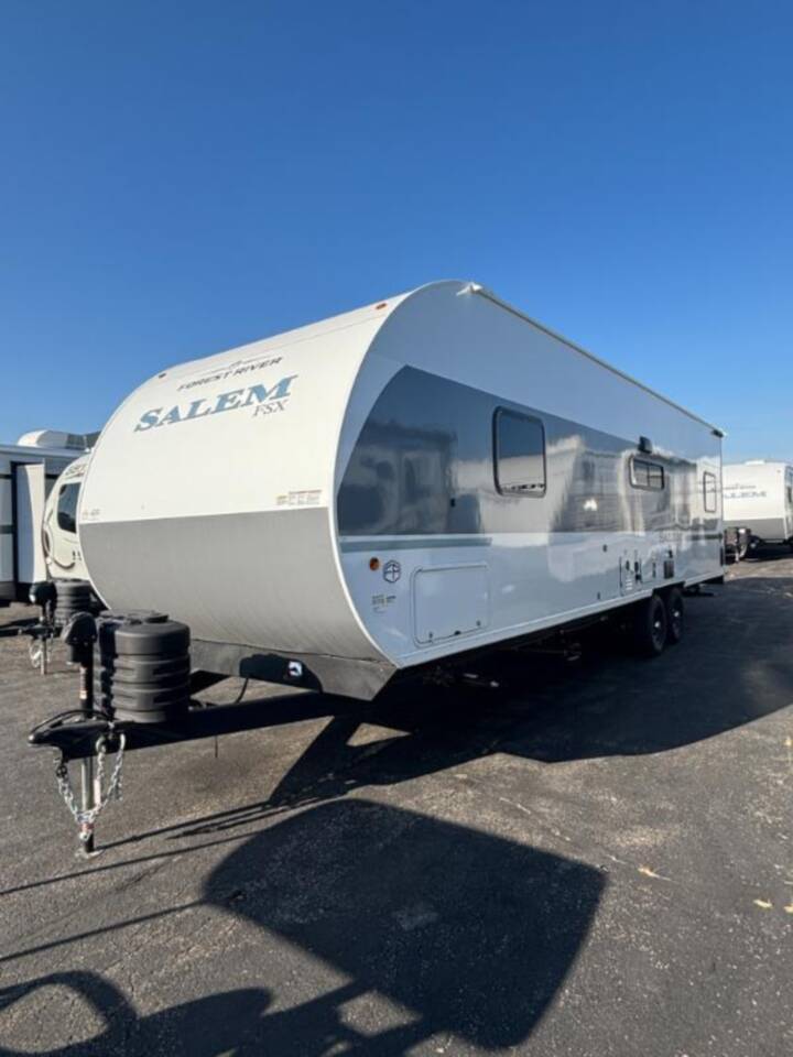 2026 Forest River Salem FSX MAX Series 270RTKX Platinum, SALEM FSX MAX SERIES TOY HAULER (2026) These Typical Features Vary by Model|Best-In-Class, Camp Comfort, Premium Partner Packages Garage |Removable Entry Steps|MAX 84-inch High Ceiling|No Wheel Well Cargo Area|Blackout Garage Glass|Full Blackout Window Coverings|MAX 3000# Ramp Door|EZ Ramp Approach Angle|Ramp Door Patio Railing Kit|Steel Garage Floor Supports|1500# Tie Downs Living Spaces |Adjustable Power Awning LED Strip|30-inch Friction Hinge Entry Door|Folding Grab Assist Handle|LED Interior Lighting|Residue Resistant Linoleum|Operable Deep Tinted Windows|Entertainment Windows|Fireplace Spaceheater (vbm)|Sofa Stow N Go Containers (vbm) Dining |Pantry|MAX Kitchen Storage|Seamless Countertops|Matching Sink Covers|Residential Hi-Rise Kitchen Faucet|12v 10cf Black Glass Refrigerator|3-Burner Cooktop|3-in-One Cooker Convection Microwave|Slim Exhaust Range Hood|Outdoor LP Quick Connect Electronics |USB A-Ports and USB C-Ports|Backup Camera Ready|Omnidirectional Digital TV Antenna|Theater Projector|Premium Sound System|JBL Interior, Outdoor Speakers|Outdoor TV Hookup Sleeping |King Bed (vbm)|Overbed Storage|Nightstands|Wardrobes|TV Prep|Bunk Beds (vbm) Bathroom |Medicine Cabinet|Vanity Sink|Large Shower|Foot Flush Toilet|Power Vent Fans Mechanicals |Battery Disconnect Switch|Dual Group 27 Battery Trays|Side Mount Solar Prep|Two 20# LP Bottles|30- to 50-Amp Service|Detachable Service Cord|Independent AC Ductwork|MAX 15k Roof AC|20k Furnace|Wall and Cabinet Ducted Heat|Seamless Holding Tanks|Color-Coded Water Lines|60k On Demand Hot Water|Water Heater Bypass|Black Tank Flush|Outdoor Spray Port|Outdoor Shower Hot Cold Coach Build |Powder Coated I-Beam Frame|Cambered Chassis|Nitrogen Filled Tires 5/8-inch TG Plywood Decking|Fiberglass Insulation|.040 Smooth Aluminum Siding|(Platinum Option adds Fiberglass)|Scratch Resist Paint|Diamond Plate Rock Guard|5-inch Bowed Truss Roof Rafters|Full Walk-on Roof Deck|SuperFlex Seamless Roof|AccessiBelly Panel System|Slideout Topper Prep Platinum Package Option: |Solid Main Entry Steps|Smooth Fiberglass Exterior Walls|Fiberglass Front Cap|Extended Power Package|Roof 200w Solar Panel|30-Amp Solar Controller|Power Tongue Jack