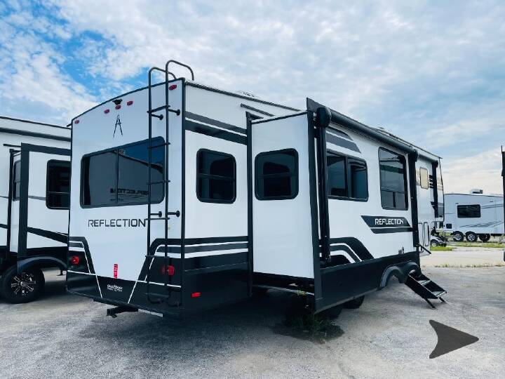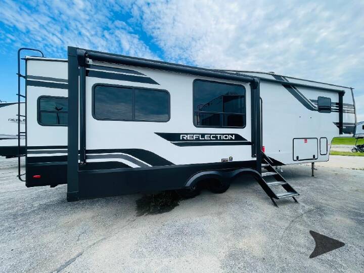 You can enjoy a spacious rear living area in this RV with dual opposing slides offering you entertainment, kitchen amenities, seating and windows for great views! The rear tri-fold sofa also converts into extra sleeping space for an extra guest or two, just like the booth dinette does. Yet you might like to add the free standing dinette option. There are theater seats to enjoy while you place your drinks in the cupholders and watch the entertainment center with a 40" LED HDTV and fireplace. The pantry is big enough to store your favorite snacks, and the kitchen island will make meal prepping easier, plus there is a 16 cu. ft. refrigerator to store any leftovers. The full bathroom has a 30" x 48" fiberglass shower and a linen closet to store your towels. The front private bedroom has a comfortable queen bed slide that can be switched out for the optional king bed, a dresser with overhead cabinets, and a full wall wardrobe that is prepped to add the optional washer and dryer so that you can extend your camping trip with clean clothes! Each Reflection fifth wheel and travel trailer by Grand Design is packed with luxury features for an overall better camping experience! The MORryde 3000CRE suspension provides smooth towing to your destination and the durable construction materials mean you can enjoy your RV for years to come. These units include the Arctic 4-Seasons Protection Package that will extend your camping season thanks to the extreme temperature testing and maximum heating power. The interior of these travel trailers and fifth wheels are designed to make you feel at home with residential cabinetry, solid surface countertops, roller shades, a spacious shower with a glass door, residential bedrooms, and the list goes on! Choose a Reflection today and start a new adventure tomorrow!