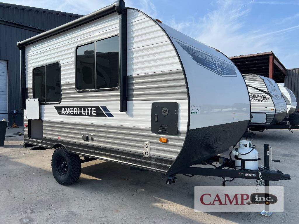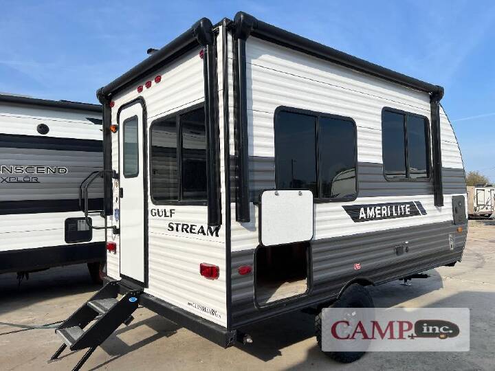 2026 Gulf Stream RV Ameri-Lite Super Lite 16RD, Gulf Stream Ameri-Lite Super Lite travel trailer 16RD highlights: Wet Bath Exterior Cargo Compartment Kitchen Pantry Two-Burner Cooktop This compact, yet cozy travel trailer will be perfect for four campers! There is a 48" x 74" bed with overhead storage to sleep on, plus a flip-up bunk above a sofa for guests! You can make breakfast for everyone on the two-burner cooktop or use the microwave oven for instant oatmeal. There is a flip-up table that will provide more counter space when you need it, and you'll appreciate the pantry and closet for ample storage space. If you're looking for an affordable, lightweight travel trailer, you've found it in the Ameri-Lite Super Lite by Gulf Stream. These models may be lighter in weight, but they don't skimp out on comfortable features. Each unit includes high-performance vinyl flooring throughout, a white kitchen sink, craft-made cabinetry with designer pulls, plus fabric-wrapped box valances to make you feel right at home. You'll enjoy the 6' 8" interior height, wood ceiling trim, multiple USB ports, and more features included within the Camping Package. These models also include a tankless water heater, a central control panel to control your unit's functions, plus plenty of safety features you are sure to appreciate for your family. You can't go wrong with an Ameri-Lite Super Lite travel trailer. Choose your favorite floorplan today!