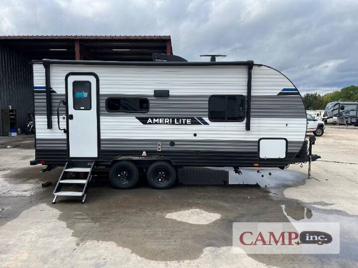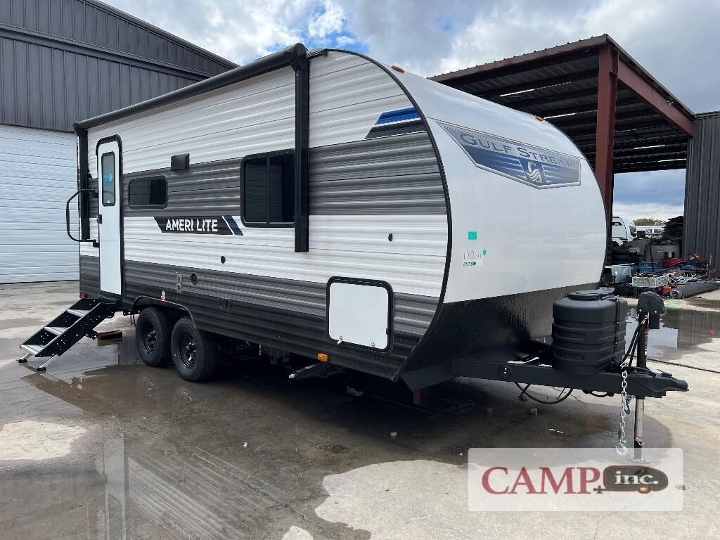 2026 Gulf Stream RV Ameri-Lite Ultra Lite 20RBS, Gulf Stream Ameri-Lite Ultra Lite travel trailer 20RBS highlights: Full Bath Exterior Pass-Through Dual Bedroom Wardrobes Sleeps Three It's time to ditch that old tent and upgrade to this cozy trailer trailer! You will love having your own queen bed to sleep on instead of an air mattress, and you even have dual wardrobes and a nightstand to store your things. And you won't have to use the camp's facilities since there is a full bath in the rear corner. Meals can be made on the three burner cooktop or in the microwave oven, and the 10.7 cu. ft. Everchill refrigerator/freezer included means you won't have to keep food cold in a cooler all weekend. Once dinner is made, you can dine at the jack knife sofa with a folding table, and any guests you may have can sleep here for the night. There is even a slide out for more space; how convenient! The Ameri-Lite Ultra Lite travel trailers by Gulf Stream are the perfect RV for families wanting to start their camping lifestyle, but not break the bank. These lightweight units are built with a diamond plate lower front, a one-piece synthetic vinyl roof, and a uni-body construction with steel hurricane straps tying the walls to the floor for added durability. The front power hitch jack and four stabilizer jacks will make set-up hassle-free once you arrive at the campground, and you can put out the electric awning to rest in the shade when you're done. Each model includes convenient amenities, like the 13,500 BTU A/C, the tankless water heater, a central control panel, and multiple USB ports for your tablet, phone, and camera! The inside is designed to make you feel at home with radiant LED lighting, designer kitchen backsplash, pleated privacy shades, craft-made cabinetry, plus many more features. Start your RV lifestyle with an affordable, lightweight Ameri-Lite Ultra Lite travel trailer today!