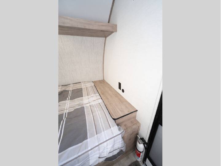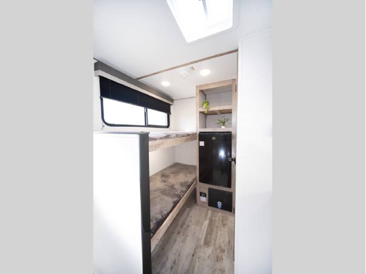 This travel trailer is ideal for families seeking adventure and relaxation! The incredible microwave and refrigerator simplify meal planning, while the two-burner cooktop lets you cook up delicious meals for the whole family. The bunk beds are a hit with kids, providing a fun and cozy sleeping space, while the comfortable bed is perfect for parents to unwind. Ample storage space is available, including flip-up storage and overhead shelves, keeping your belongings organized and within reach. If you're looking for an affordable, lightweight travel trailer, you've found it in the Ameri-Lite Super Lite by Gulf Stream. These models may be lighter in weight, but they don't skimp out on comfortable features. Each unit includes high-performance vinyl flooring throughout, a white kitchen sink, craft-made cabinetry with designer pulls, plus fabric-wrapped box valances to make you feel right at home. You'll enjoy the 6' 8" interior height, wood ceiling trim, multiple USB ports, and more features included within the Camping Package. These models also include a tankless water heater, a central control panel to control your unit's functions, plus plenty of safety features you are sure to appreciate for your family. You can't go wrong with an Ameri-Lite Super Lite travel trailer. Choose your favorite floorplan today!
