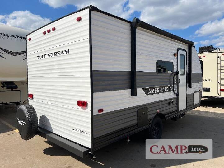 2026 Gulf Stream RV Ameri-Lite Super Lite 177BH, Gulf Stream RV Ameri-Lite Super Lite LE Series travel trailer 177BH highlights: Bunk Beds Two Burner Cooktop Overhead Storage Sleeps Five It's easier than ever to enjoy the camping lifestyle with this lightweight travel trailer. There are bunk beds for your guests or little ones, a front bed for you, plus a booth dinette that can double as dining and sleeping space. The private toilet and shower will allow you to stay clean throughout each trip, and since the sink is at the kitchen counter, someone can brush their teeth while the other showers before bed. You will love the fireplace included in this model for a more at-home feel, or you just might find yourselves outdoors under the power awning most of the day! If you're looking for an affordable, lightweight travel trailer, you've found it in the Ameri-Lite Super Lite by Gulf Stream. These models may be lighter in weight, but they don't skimp out on comfortable features. Each unit includes high-performance vinyl flooring throughout, a white kitchen sink, craft-made cabinetry with designer pulls, plus fabric-wrapped box valances to make you feel right at home. You'll enjoy the 6' 8" interior height, wood ceiling trim, multiple USB ports, and more features included within the Camping Package. These models also include a tankless water heater, a central control panel to control your unit's functions, plus plenty of safety features you are sure to appreciate for your family. You can't go wrong with an Ameri-Lite Super Lite travel trailer. Choose your favorite floorplan today!