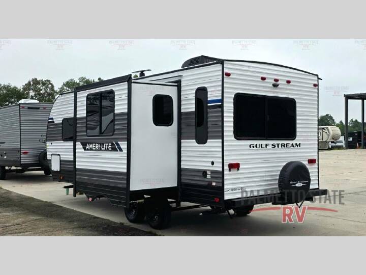 The Ameri-Lite Ultra Lite travel trailers by Gulf Stream are the perfect RV for families wanting to start their camping lifestyle, but not break the bank. These lightweight units are built with a diamond plate lower front, a one-piece synthetic vinyl roof, and a uni-body construction with steel hurricane straps tying the walls to the floor for added durability. The front power hitch jack and four stabilizer jacks will make set-up hassle-free once you arrive at the campground, and you can put out the electric awning to rest in the shade when you're done. Each model includes convenient amenities, like the 13,500 BTU A/C, the tankless water heater, a central control panel, and multiple USB ports for your tablet, phone, and camera! The inside is designed to make you feel at home with radiant LED lighting, designer kitchen backsplash, pleated privacy shades, craft-made cabinetry, plus many more features. Start your RV lifestyle with an affordable, lightweight Ameri-Lite Ultra Lite travel trailer today!