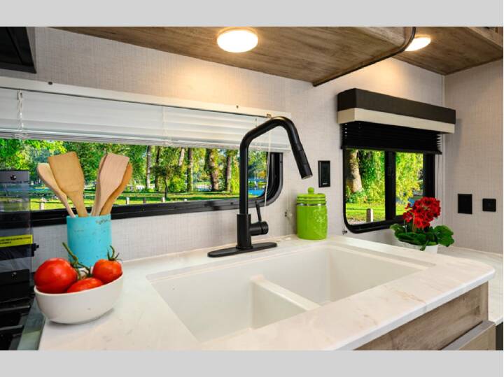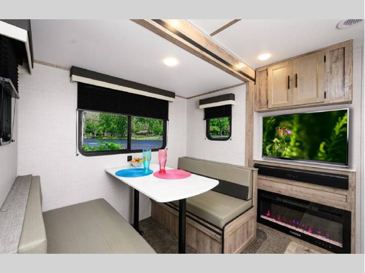 Camping with friends has never been so easy than in this cozy travel trailer. Once you arrive at your destination, prepare lunch on the three burner cooktop and you can dine at the booth dinette. Your guest can make this area their bed at night, along with the jack knife sofa. There is a front master bedroom with a queen bed that will feel just like home, and the two wardrobes provide a place for all your clothes. Head outside to find a pass-through storage, additional outside storage, plus an electric awning with LED lights! The Ameri-Lite Ultra Lite travel trailers by Gulf Stream are the perfect RV for families wanting to start their camping lifestyle, but not break the bank. These lightweight units are built with a diamond plate lower front, a one-piece synthetic vinyl roof, and a uni-body construction with steel hurricane straps tying the walls to the floor for added durability. The front power hitch jack and four stabilizer jacks will make set-up hassle-free once you arrive at the campground, and you can put out the electric awning to rest in the shade when you're done. Each model includes convenient amenities, like the 13,500 BTU A/C, the tankless water heater, a central control panel, and multiple USB ports for your tablet, phone, and camera! The inside is designed to make you feel at home with radiant LED lighting, designer kitchen backsplash, pleated privacy shades, craft-made cabinetry, plus many more features. Start your RV lifestyle with an affordable, lightweight Ameri-Lite Ultra Lite travel trailer today!