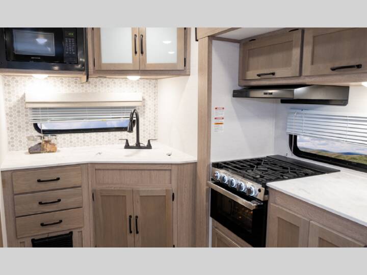 2026 Gulf Stream RV Ameri-Lite Ultra Lite 240RK, Gulf Stream Ameri-Lite Ultra Lite travel trailer 240RK highlights: This travel trailer is perfect for you and your partner, thanks to the queen bed, which is ideal for sleeping and resting peacefully, beside it you will find a shirt closet and wardrobe to store your belongings. You can rest a bit on the theater seating or also have a chit-chat with your partner. Conveniently cook delicious food thanks to the kitchen which includes a refrigerator, three cooktop burners, microwave, and sink.  After the food is done, you can comfortably have lunch at the 38' dinette while watching the TV. This unit is also fitted with a lot of space to store different things like pass-thru storage, overhead cabinets, pantry, and linen. Finally, take a relaxing bath in the incredible full bathroom with a skylight above the shower. The Ameri-Lite Ultra Lite travel trailers by Gulf Stream are the perfect RV for families wanting to start their camping lifestyle, but not break the bank. These lightweight units are built with a diamond plate lower front, a one-piece synthetic vinyl roof, and a uni-body construction with steel hurricane straps tying the walls to the floor for added durability. The front power hitch jack and four stabilizer jacks will make set-up hassle-free once you arrive at the campground, and you can put out the electric awning to rest in the shade when you're done. Each model includes convenient amenities, like the 13,500 BTU A/C, the tankless water heater, a central control panel, and multiple USB ports for your tablet, phone, and camera! The inside is designed to make you feel at home with radiant LED lighting, designer kitchen backsplash, pleated privacy shades, craft-made cabinetry, plus many more features. Start your RV lifestyle with an affordable, lightweight Ameri-Lite Ultra Lite travel trailer today!