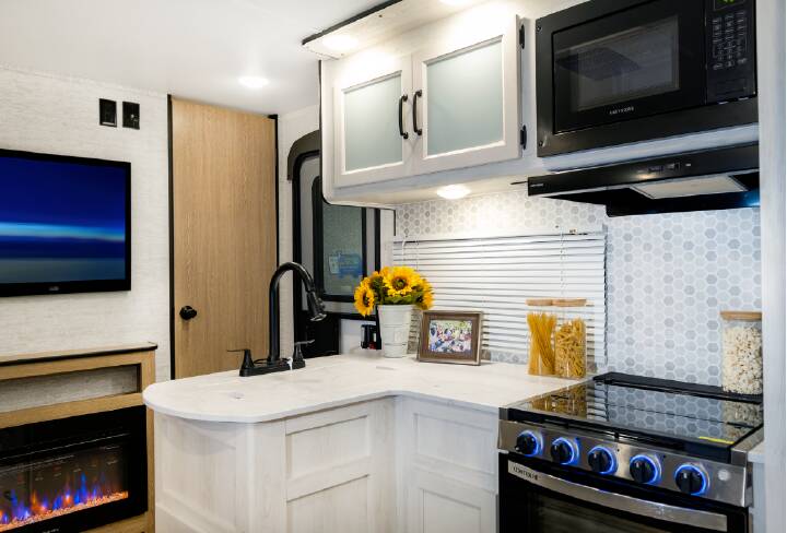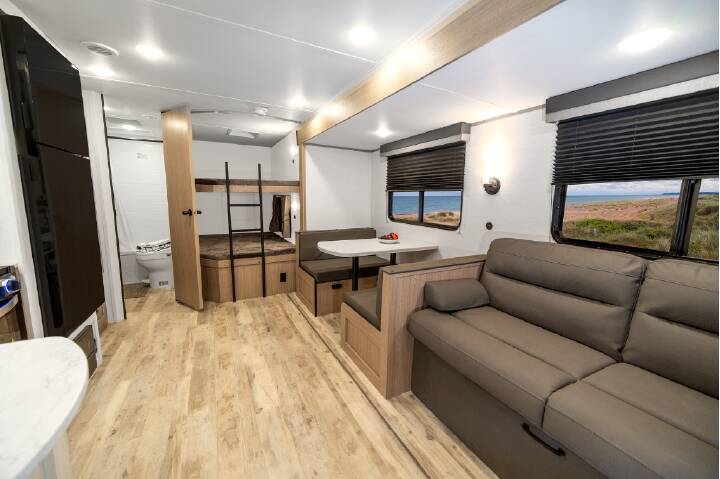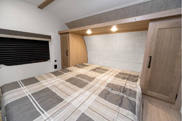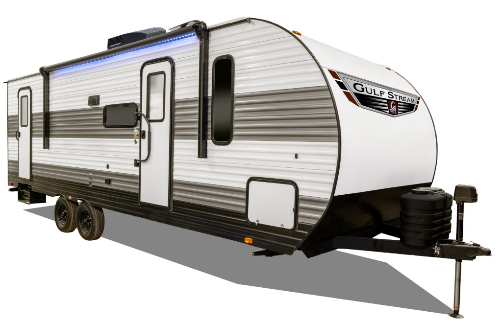 A trip to the lake or your favorite state park just got better in this comfortable travel trailer. Whether you're relaxing on the sofa or booth dinette, cooking in the spacious kitchen, or sitting outside under the electric awning with LED lights, you will enjoy every minute you camp. You and your spouse will have a private bedroom up front with a queen bed and dual wardrobes, and there are double-size bunks for the kids or your friends! The Ameri-Lite Ultra Lite travel trailers by Gulf Stream are the perfect RV for families wanting to start their camping lifestyle, but not break the bank. These lightweight units are built with a diamond plate lower front, a one-piece synthetic vinyl roof, and a uni-body construction with steel hurricane straps tying the walls to the floor for added durability. The front power hitch jack and four stabilizer jacks will make set-up hassle-free once you arrive at the campground, and you can put out the electric awning to rest in the shade when you're done. Each model includes convenient amenities, like the 13,500 BTU A/C, the tankless water heater, a central control panel, and multiple USB ports for your tablet, phone, and camera! The inside is designed to make you feel at home with radiant LED lighting, designer kitchen backsplash, pleated privacy shades, craft-made cabinetry, plus many more features. Start your RV lifestyle with an affordable, lightweight Ameri-Lite Ultra Lite travel trailer today!
