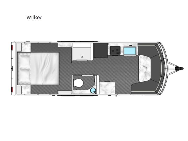 Pack your bags for a new adventure in this Willow travel trailer. You and your spouse or camping friend will love the natural light that streams in from the panoramic windows as you relax on the U-shaped dinette. Prepare meals each day on the two burner stainless steel cooktop or use the convection microwave, and you'll find plenty of overhead cabinets for all your necessities. This model features a private toilet and sink, with the shower right across the hall so two people can freshen up at once. When it's time to call it a night, you can rest comfortably on the walk-around queen bed, and the 32" bedroom TV will allow you to watch a late-night movie in bed! If you like to have your own space at night, just choose the optional twin beds! This model also has a dry weight that ranges from 5,650-5,850 lbs., a tongue weight between 725-790 lbs., and a carrying capacity between 1,650-1,850 lbs. You may also like to choose the optional Rover Package that includes a 3" lift, an aluminum tube rear bumper, rugged decals, and more!