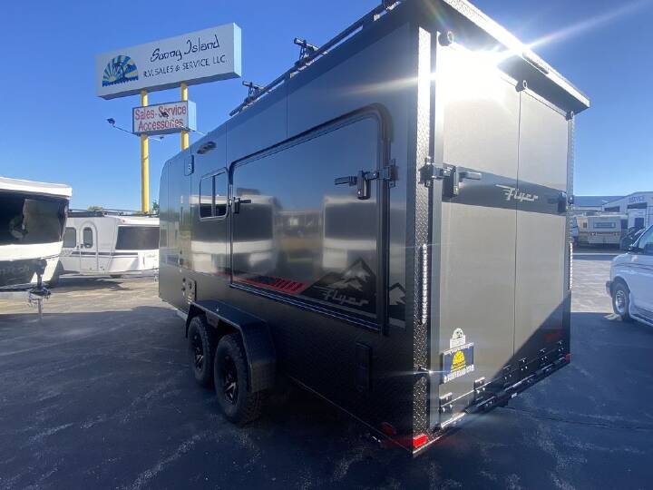 Forge all the corners of the world. Every Flyer is built utilizing an All-Aluminum, Fully Welded Cage Frame, making them strong enough to handle conditions when you find yourself off the paved trail. Forge is the micro-lite toy hauler that can go where traditional RVs simply cannot.