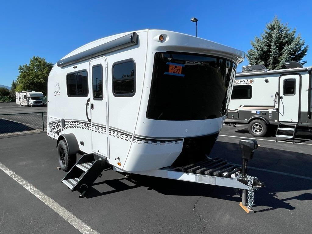 With any Sol travel trailer by inTech RV you will find strong, durable construction consisting of lightweight aluminum that is easier to tow and resists rust, water, and dents. The Tilt-Forward Design creates more space inside so you can stretch out, and the panoramic windshield gives a great view of the mountains, ocean, or forest! The elegant interior features tinted windows with shades, Infinity woven flooring, and a stainless steel cooktop and microwave. You will stay comfortable year around since these models include a 15K BTU A/C and a 16K BTU furnace. The optional Rover Package can also be added that features rugged decals, off-road tires with a 3" lift, two different color choices to choose from, plus more!