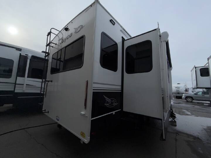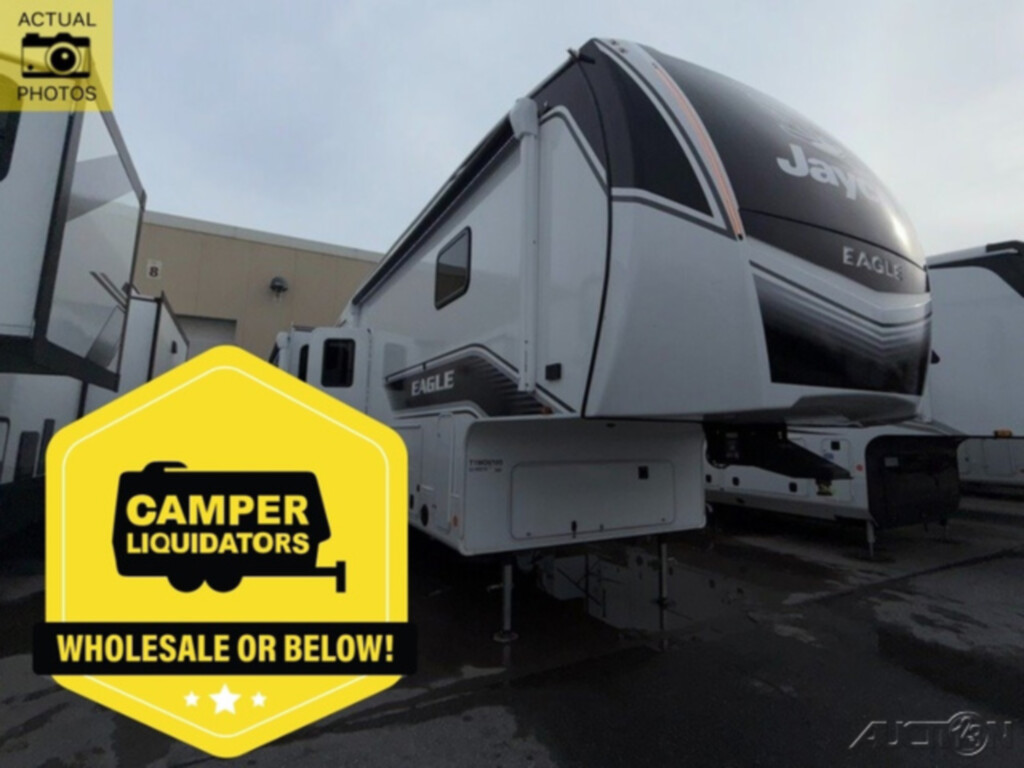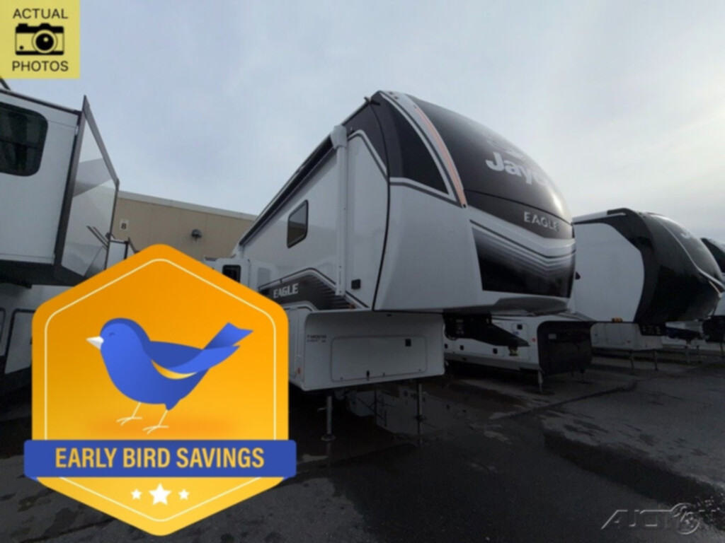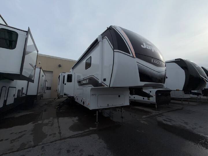 2026 Jayco Eagle 321RSTS, , Basic Information - Year: 2026, Basic Information - Make: Jayco, Basic Information - Model: Eagle, Basic Information - Trim: 321RSTS, Basic Information - Stock Number: 52291, Basic Information - VIN: 1UJCA0BT1T1WD0105, Basic Information - Condition: New, Basic Information - Dry Weight: 11145, Basic Information - Type: Fifth Wheel, Basic Information - Sleeping Capacity: 6, Basic Information - Length (Feet): 36.58, Basic Information - Construction Body Material: Aluminum, Basic Information - Sidewall Construction: Fiberglass, Basic Information - Dry Weight (kg): 5055.4, Basic Information - Dry Weight (lbs): 11145, Bedroom / Bath - Bathroom, Bedroom / Bath - Bathroom Flooring Type: Vinyl, Bedroom / Bath - Bathroom Location: Center, Bedroom / Bath - Bathroom Medicine Cabinet, Bedroom / Bath - Bathroom Mirror, Bedroom / Bath - Bathroom Vent / Fan System, Bedroom / Bath - Full Size Master Bedroom Closet, Bedroom / Bath - Master Bedroom, Bedroom / Bath - Master Bedroom Door Style: Full Sliding Door, Bedroom / Bath - Master Bedroom Flooring Type: Vinyl, Bedroom / Bath - Master Bedroom Location: Front, Bedroom / Bath - Master Bedroom Mirror Doors, Bedroom / Bath - Number Of Bathrooms: 1, Bedroom / Bath - Number Of King Size Beds: 1, Bedroom / Bath - Shower, Bedroom / Bath - Shower Door Type: Plastic / Glass, Bedroom / Bath - Toilet, Bedroom / Bath - Toilet Type: Porcelain, Cargo / Storage - Pass-Thru Storage, Comfort - Ceiling Fan, Comfort - Fireplace, Comfort - Heater, Comfort - Sofa, Comfort - Recliners / Rockers, Comfort - Number Of Sofas: 1, Comfort - Number Of Recliner / Rockers: 2, Comfort - Number Of Convertible / Sofa Beds: 1, Comfort - Air Conditioning Type: Automatic, Comfort - Recliners / Rockers Material: Vinyl, Comfort - Sofa Material: Vinyl, Comfort - Heater (BTUs): 35000, Comfort - Heater Type: Automatic, Convenience - Power Vent Fan, Convenience - Sky Light, Convenience - Roof Vents, Convenience - Leveling Jack Type: Front Power / Rear Power, Drivetrain - Number Of Axles: 2, Electrical / Generator - Solar Battery Charger, Electrical / Generator - Exterior Plugs, Electrical / Generator - Ground Fault Plugs, Electrical / Generator - Battery, Electrical / Generator - Voltage Meter, Electrical / Generator - Water Pump Power Display, Electrical / Generator - Air Conditioning Prewiring, Electrical / Generator - Heat Prewiring, Electrical / Generator - Battery Power Converter, Entertainment - Television, Entertainment - Radio, Entertainment - Speakers, Entertainment - TV Antenna Prewiring, Entertainment - Cable Prewiring, Entertainment - Surround Sound, Entertainment - Satellite Prewiring, Entertainment - Number Of Radios: 1, Entertainment - Number Of Televisions: 1, Entertainment - Speaker Location(s): Interior / Exterior, Exterior - Exterior Flood Lights, Exterior - Exterior Ladder, Exterior - Exterior Shower, Exterior - Retractable Roof Antenna, Holding Tanks - Fresh Water Holding Tank Gauge, Holding Tanks - G