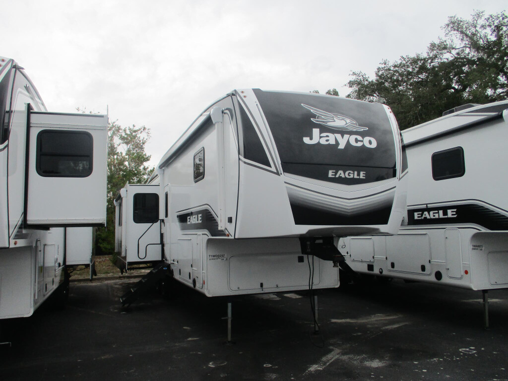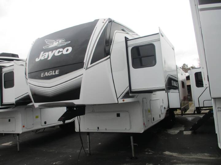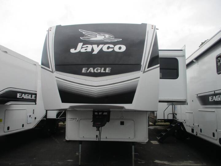 2026 Jayco Eagle 321RSTS, Air Conditioning, Auxiliary Battery, Awning, Ceiling Fan, CO Detector, Exterior Speakers, External Shower, Fireplace, Free Standing Dinette wChairs, Hitch, Insulated, King Size Bed, Ladder, Leveling Jacks, LP Detector, Medicine Cabinet, Microwave, Oven, Power Roof Vent, Refrigerator, Rocker Recliner, Roof Vents, Shower, Skylight, Slideout, Smoke Detector, Solar Panels, Spare Tire Kit, Stove Top Burner, Surround Sound System, Toilet, TV, Water Heater,