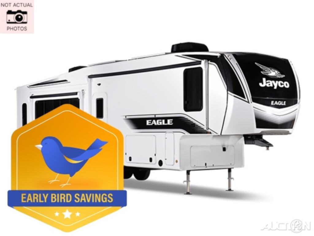 2026 Jayco Eagle 335LSTS, , Basic Information - Year: 2026, Basic Information - Make: Jayco, Basic Information - Model: Eagle, Basic Information - Trim: 335LSTS, Basic Information - Stock Number: 82557, Basic Information - VIN: 1UJCA0BU5T1WE0189, Basic Information - Condition: New, Basic Information - Type: Fifth Wheel, Basic Information - Sleeping Capacity: 6, Basic Information - Length (Feet): 0, Basic Information - Construction Body Material: Aluminum, Basic Information - Sidewall Construction: Fiberglass, Bedroom / Bath - Bathroom, Bedroom / Bath - Bathroom Flooring Type: Vinyl, Bedroom / Bath - Bathroom Location: Center, Bedroom / Bath - Bathroom Medicine Cabinet, Bedroom / Bath - Bathroom Mirror, Bedroom / Bath - Bathroom Vent / Fan System, Bedroom / Bath - Full Size Master Bedroom Closet, Bedroom / Bath - Master Bedroom, Bedroom / Bath - Master Bedroom Door Style: Full Sliding Door, Bedroom / Bath - Master Bedroom Flooring Type: Vinyl, Bedroom / Bath - Master Bedroom Location: Front, Bedroom / Bath - Master Bedroom Mirror Doors, Bedroom / Bath - Number Of Bathrooms: 1, Bedroom / Bath - Number Of King Size Beds: 1, Bedroom / Bath - Shower, Bedroom / Bath - Shower Door Type: Plastic / Glass, Bedroom / Bath - Toilet, Bedroom / Bath - Toilet Type: Porcelain, Cargo / Storage - Pass-Thru Storage, Comfort - Ceiling Fan, Comfort - Fireplace, Comfort - Heater, Comfort - Sofa, Comfort - Recliners / Rockers, Comfort - Number Of Sofas: 1, Comfort - Number Of Recliner / Rockers: 2, Comfort - Number Of Convertible / Sofa Beds: 1, Comfort - Air Conditioning Type: Automatic, Comfort - Recliners / Rockers Material: Vinyl, Comfort - Sofa Material: Vinyl, Comfort - Heater (BTUs): 35000, Comfort - Heater Type: Automatic, Convenience - Power Vent Fan, Convenience - Sky Light, Convenience - Roof Vents, Convenience - Leveling Jack Type: Front Power / Rear Power, Drivetrain - Number Of Axles: 2, Electrical / Generator - Solar Battery Charger, Electrical / Generator - Exterior Plugs, Electrical / Generator - Ground Fault Plugs, Electrical / Generator - Battery, Electrical / Generator - Voltage Meter, Electrical / Generator - Water Pump Power Display, Electrical / Generator - Air Conditioning Prewiring, Electrical / Generator - Heat Prewiring, Electrical / Generator - Battery Power Converter, Entertainment - Television, Entertainment - Radio, Entertainment - Speakers, Entertainment - TV Antenna Prewiring, Entertainment - Cable Prewiring, Entertainment - Surround Sound, Entertainment - Satellite Prewiring, Entertainment - Number Of Radios: 1, Entertainment - Number Of Televisions: 1, Entertainment - Speaker Location(s): Interior / Exterior, Exterior - Exterior Flood Lights, Exterior - Exterior Ladder, Exterior - Exterior Shower, Exterior - Retractable Roof Antenna, Holding Tanks - Fresh Water Holding Tank Gauge, Holding Tanks - Gray Water Holding Tank Gauge, Holding Tanks - Black Water Holding Tank Gauge, Holding Tanks - Holding Tanks, Interior - Interior Wood