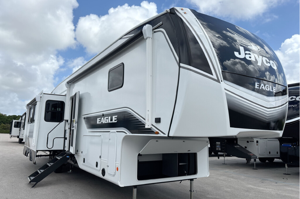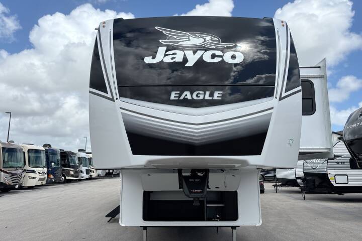 This Fifth-Wheel sleeps 6 people and is available at Camping World in Fort Pierce, FL.