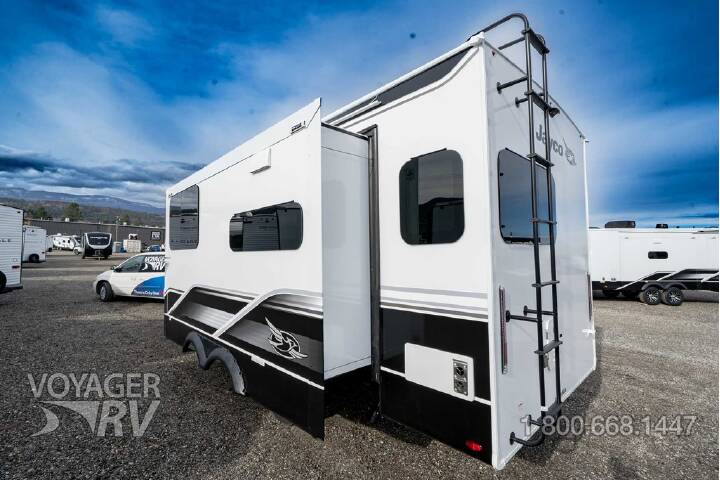 Customer Value Package: 15K BTU "Whisper Quiet" A/C & Bedroom A/C Prep, 40" 4K SMART LED TV in Living Room, 50AMP Service with Dual A/C Ducts, 60K On-demand Tankless Water Heater, Custom Machined Aluminum Rims, Electric Patio Awning, Hidden Hinges on Cabinet Doors, Interior & Exterior Bluetooth Audio Connect w/ MB Quart Speakers, Keyed-A-like Lock System, Mor/ryde Step Above Entrance Step, Rain Proof Bathroom Power Vent, Rear 2" Receiver (For Accessories), Winegard Air 5G 360+ Antenna & Router Prep, Inverter Pre-Wire 120V Outlets (Select Outlets), Overlander I Solar Package.Luxury Package: Blackout Roller Shades with Reflective Side Throughout, GE Black Glass 10 Cu.Ft. 12V Refrigerator , JayPort 2" Mount for Outside Accessories, Residential Style Glass Shower Door, Washer/Dryer Prep (Select Models), GE 30" OTR Black and Stainless Microwave with Exhaust Fan, GE Black and Stainless 21" Range with Edge to Edge Grates, Inverter Pre-Wire (Multiple Locations), Multi-Function "All In One" Black Stainless Steel Kitchen Sink, Olympic 66"x80" Residential Mattress, Magnetic Catches For All Doors & Drawers, Solid Surface Kitchen Countertop(s), JayCommand with Monitor Switch Panel, Exterior Light & Outlet at JayPort Location.4-Star Handling Package: 15" E-Rated or 16" H-Rated Wheels & Tires (Model Specific), Dexter Axles w/ Nev-R-Adjust Brakes and E-Z Lube Hubs, MORryde CRE-3000 Rubberized Suspension, Wet Bolt Fasteners w/ Bronze Bushings.Extreme Weather PackageDual Pane Frameless Tinted Safety Glass WindowsHALO 22" Outside Griddle W/Deep Sink for JayPort SystemSpartan Lync TPMS MonitoringFurniture Cup Holder Tables (1 pair)5 in. Magnum Truss with plywood roof deckingAlphaPly TPO roof membrane (thickest roof membrane with limited lifetime warranty)50-amp detachable power cordLED lighting in pass-through areaAuto-grade vinyl graphicsAutomotive-style front cap with max turn radius (painted on select models)Black tank flushAdditional dump valve at terminationLED light and switch at terminationClimate Shield zero-degree tested weather protectionFully enclosed and heated underbelly (ducted)35K BTU furnaceDouble-layer fiberglass batt insulation in ceiling and floorDouble-sided radiant barrier insulation (roof, floor, and behind cap)PEX plumbingDual 30 lb. LP bottlesFactory-installed roof ladderGalvanized steel coated outside kitchensHELIX Cooling System (industry exclusive)Insulated dual-duct designDirectional and closeable A/C ventsLarger return air vents with user-accessible filtersIndependent satellite and cable hookups (outside kitchens and/or pass-through storage areas)LED exterior lighting packageLP quick connect for gas griddle (next to JayPort)Metal slam-latch baggage doorsNautilus 2.5 water connectionsNitrogen-fi